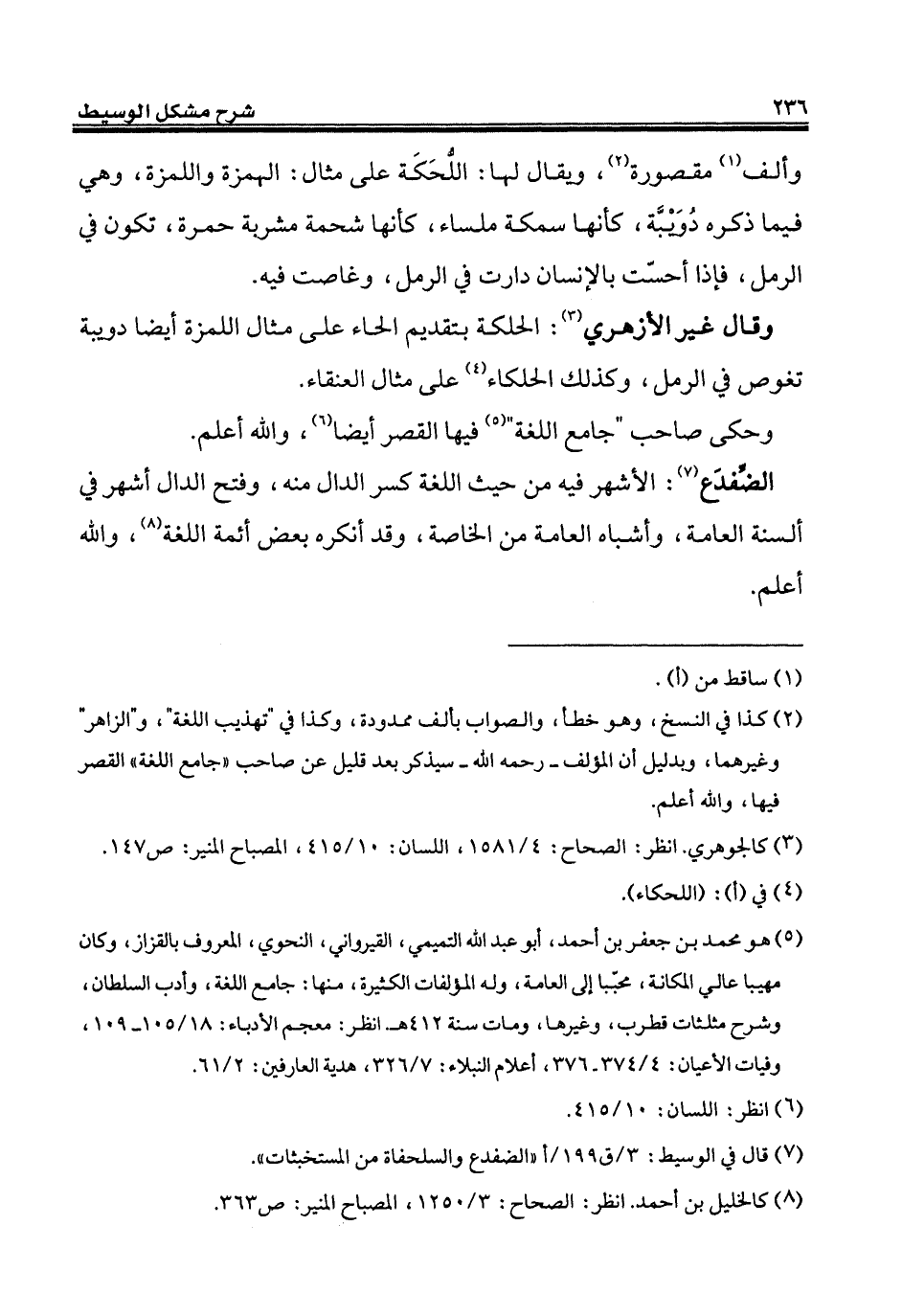 (¬8) كالخليل بن أحمد. انظر: الصحاح: 3/ 1250، المصباح المنير: ص 363.
