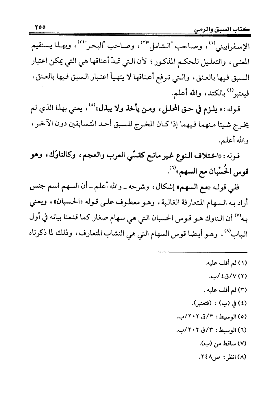 قوله: "اختلاف النوع غير مانع كقسّي العرب والعجم، وكالناوَك، وهو قوس الحُسْبان مع السهم" (¬6).