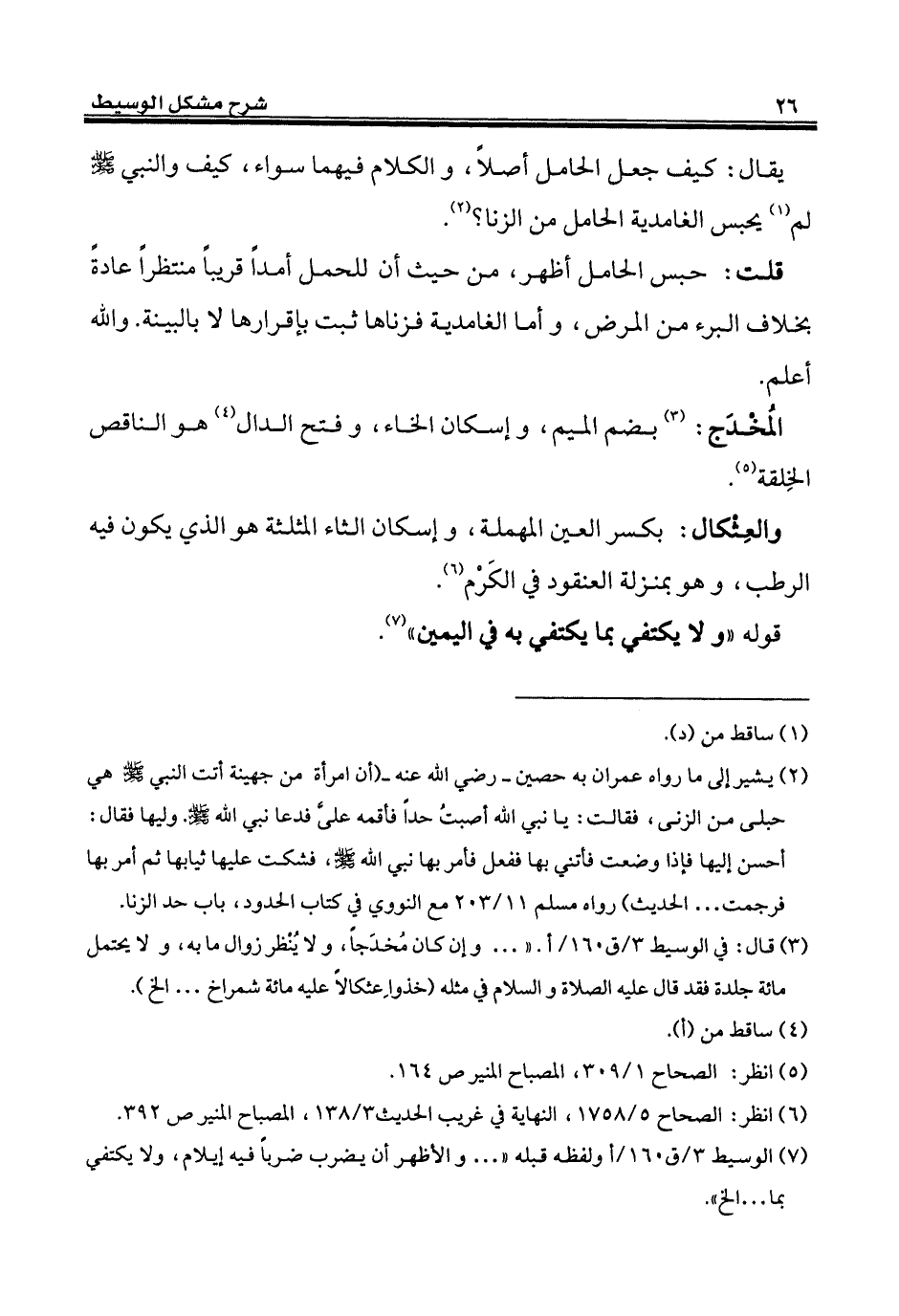 (¬6) انظر: الصحاح 5/ 1758، النهاية في غريب الحديث 3/ 138، المصباح المنير ص 392.