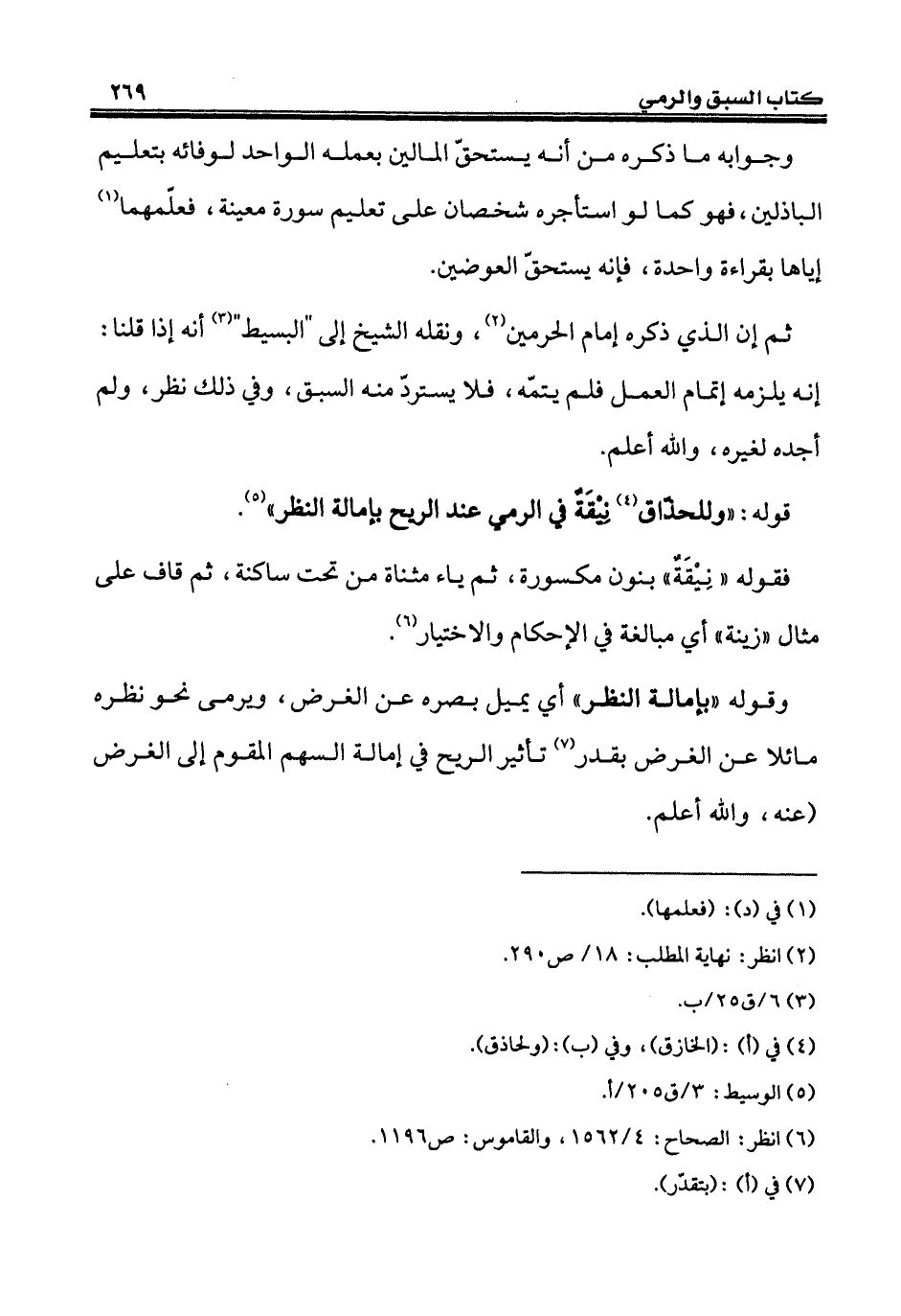 وقوله "بإمالة النظر" أي يميل بصره عن الغرض، ويرمى نحو نظره مائلا عن الغرض بقدر (¬7) تأثير الريح في إمالة السهم المقوم إلى الغرض (عنه، والله أعلم.