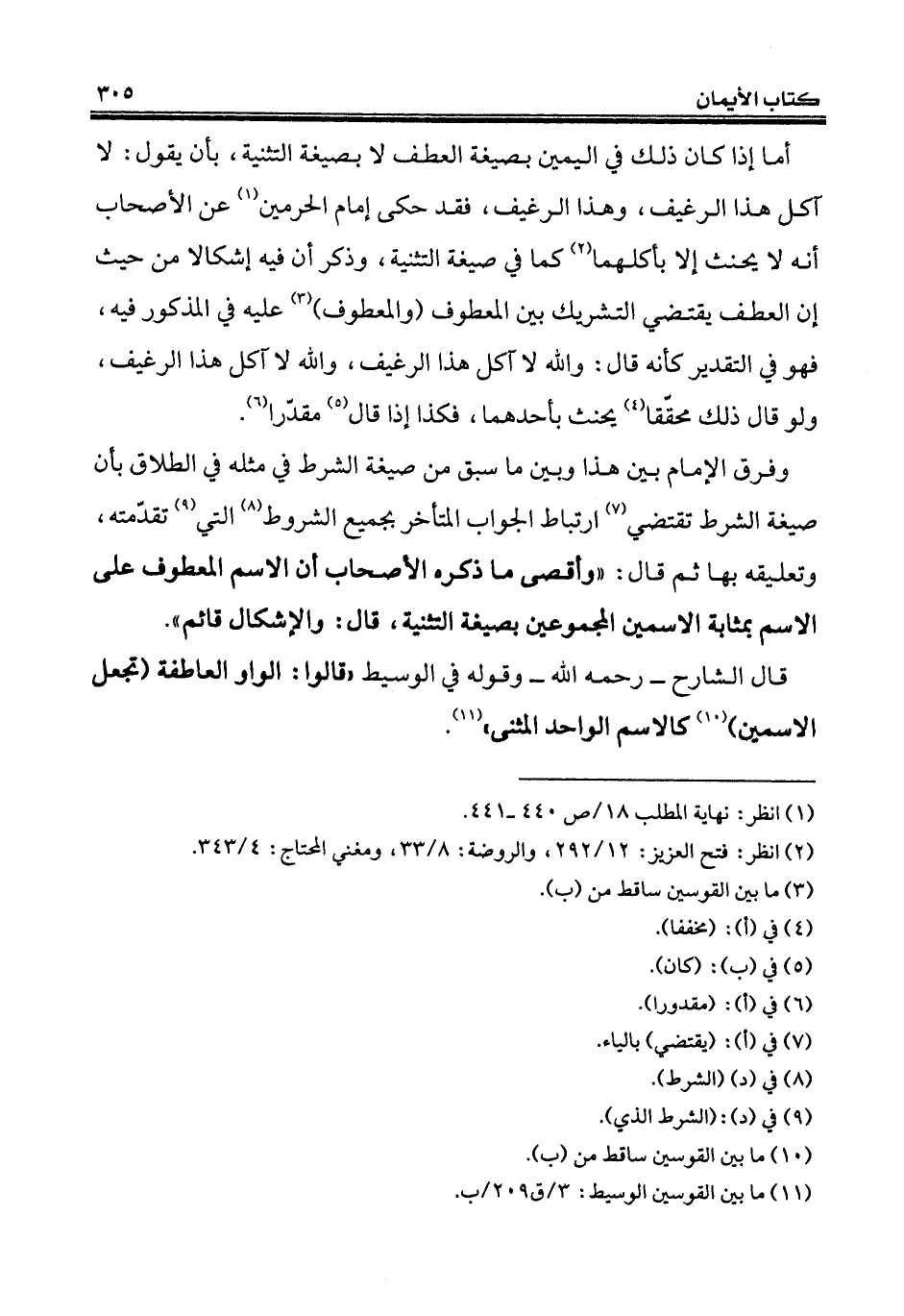 قال الشارح - رحمه الله - وقوله في الوسيط "قالوا: الواو العاطفة (تجعل الاسمين) (¬10) كالاسم الواحد المثنى" (¬11).