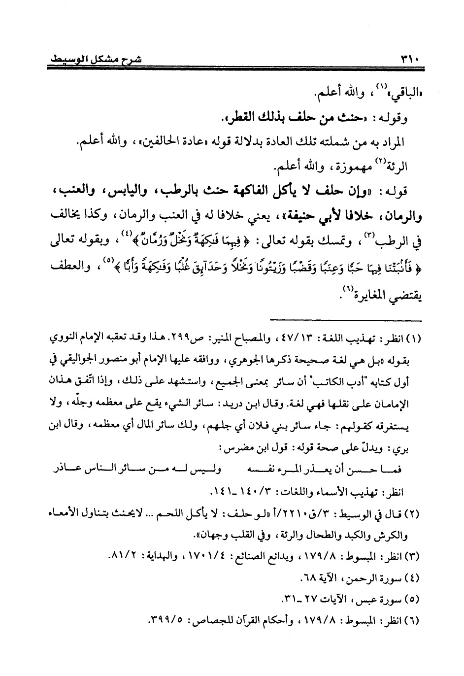 (¬1) انظر: تهذيب اللغة: 13/ 47، والمصباح المنير: ص 299. هذا وقد تعقبه الإمام النووي بقوله "بل" لغة صحيحة ذكرها الجوهري، ووافقه عليها الإمام أبو منصور الجواليقي في أول كتابه "أدب الكاتب" أن سائر بمعنى الجميع، واستشهد على ذلك، وإذا اتّفق هذان الإمامان على نقلها فهي لغة. وقال ابن دريد: سائر الشيء يقع على معظمه وجلّه، ولا يستغرقه كقولهم: جاء سائر بني فلان أي جلهم، ولك سائر المال أي معظمه، وقال ابن بري: ويدلّ على صحة قوله: قول ابن مضرس: