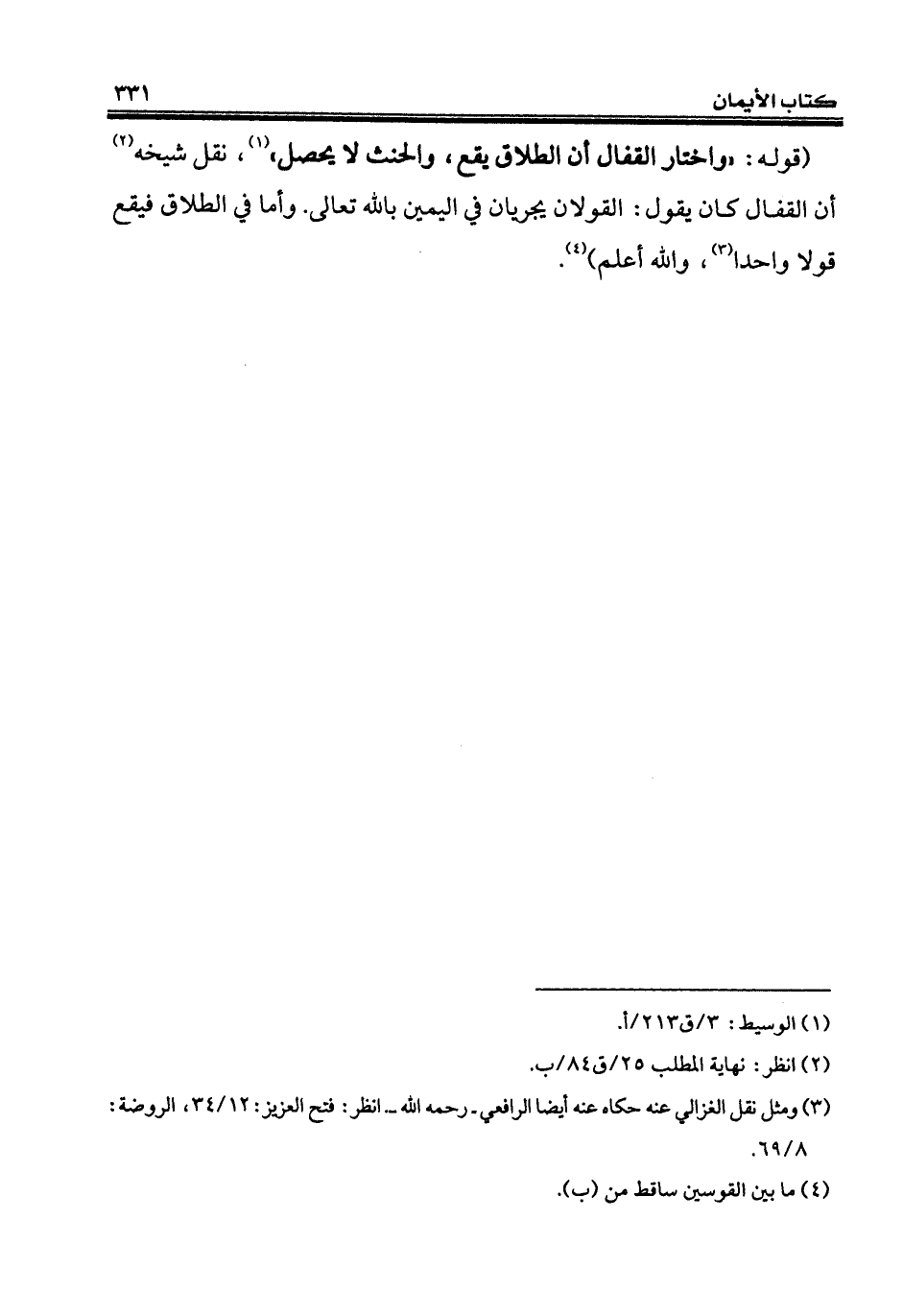 (¬3) ومثل نقل الغزالي عنه حكاه عنه أيضا الرافعي - رحمه الله - انظر: فتح العزيز: 12/ 34، الروضة: 8/ 69.