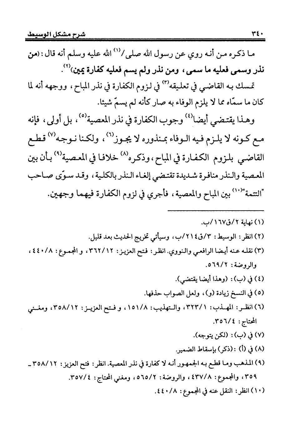 (¬9) المذهب وما قطع به الجمهور أنه لا كفارة في نذر المعصية. انظر: فتح العزيز: 12/ 358 - 359، والمجموع: 8/ 437، والروضة: 2/ 565، ومغني المحتاج: 4/ 357.