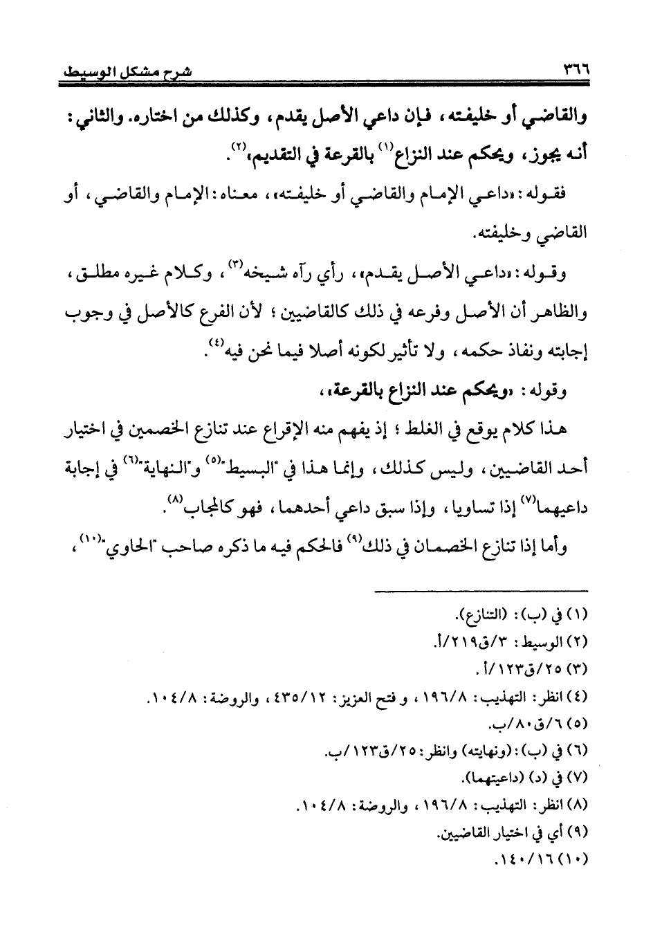 هذا كلام يوقع في الغلط؛ إذ يفهم منه الإقراع عند تنازع الخصمين في اختيار أحد القاضيين، وليس كذلك، وإنما هذا في "البسيط" (¬5) و"النهاية" (¬6) في إجابة داعيهما (¬7) إذا تساويا، وإذا سبق داعي أحدهما، فهو كالمجاب (¬8).