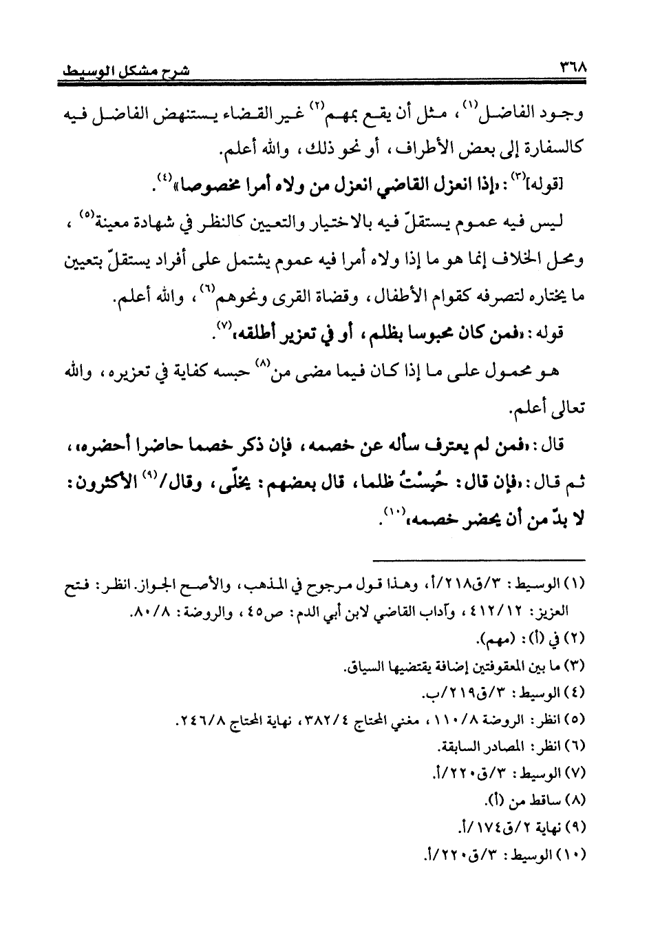 (¬1) الوسيط: 3/ ق 218/ أ، وهذا قول مرجوح في المذهب، والأصح الجواز. انظر: فتح العزيز: 12/ 412، وآداب القاضي لابن أبي الدم: ص 45، والروضة: 8/ 80.