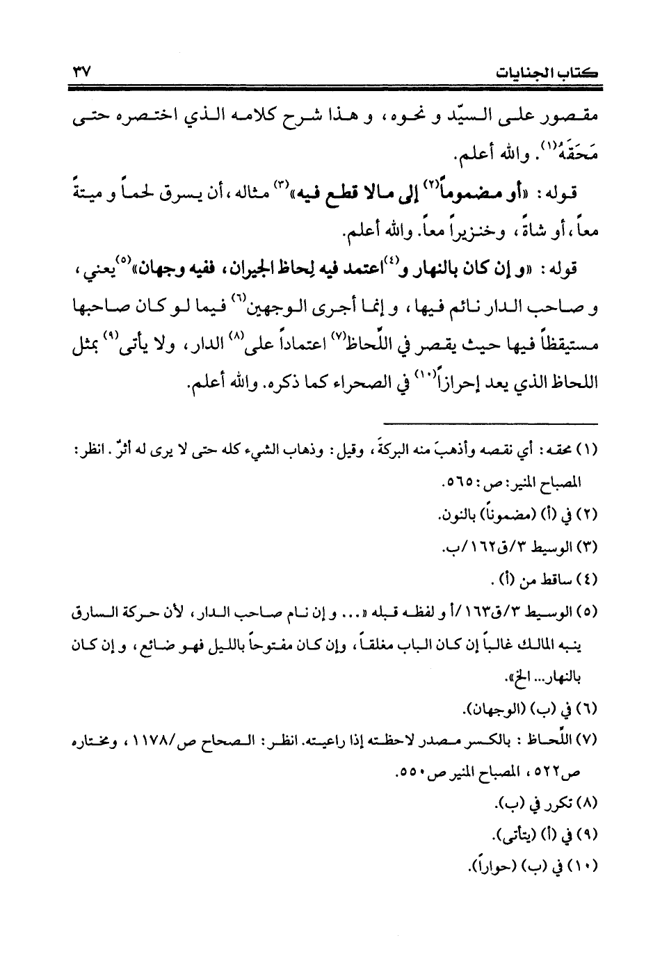 (¬5) الوسيط 3/ ق 163/ أولفظه قبله " ... وإن نام صاحب الدار, لأن حركة السارق ينبه المالك غالباً إن كان الباب مغلقاً، وإن كان مفتوحاً بالليل فهو ضائع، وإن كان بالنهار ... إلخ".