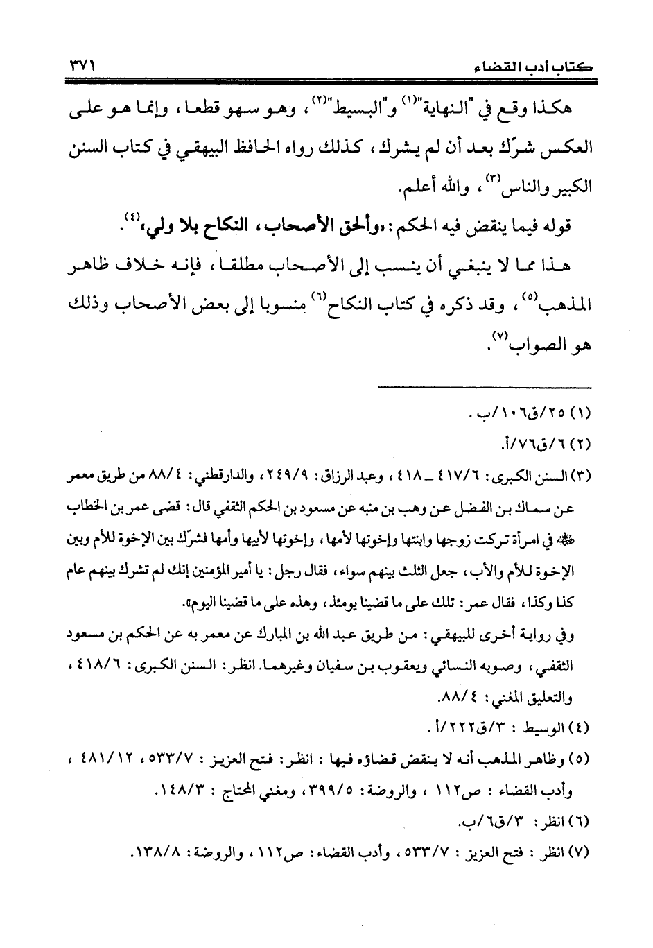 (¬7) انظر: فتح العزيز: 7/ 533، وأدب القضاء: ص 112، والروضة: 8/ 138.