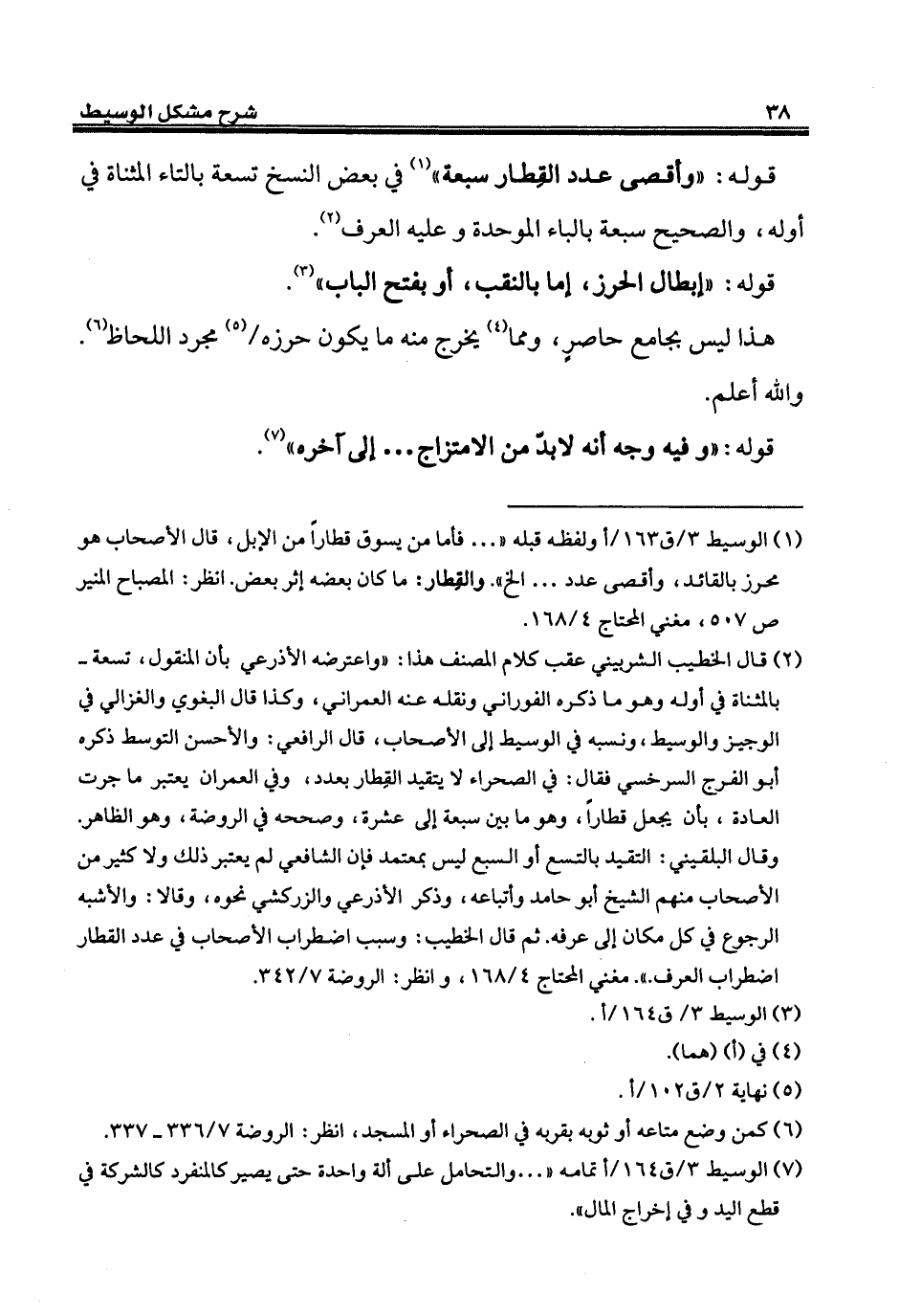 (¬1) الوسيط 3/ ق 163/ أولفظه قبله " ... فأما من يسوق قطاراً من الإبل، قال الأصحاب هو محرز بالقائد، وأقصى عدد ... إلخ". والقطار: ما كان بعضه إثر بعض. انظر: المصباح المنير ص 507، مغني المحتاج 4/ 168.