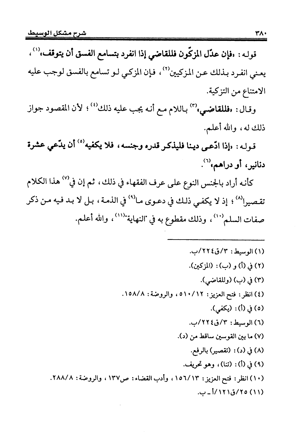 (¬10) انظر: فتح العزيز: 13/ 156، وأدب القضاء: ص 137، والروضة: 8/ 288.