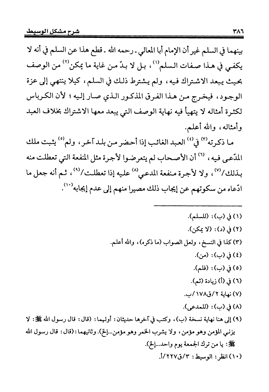 (¬10) انظر: الوسيط: 3/ ق 227/ أ.