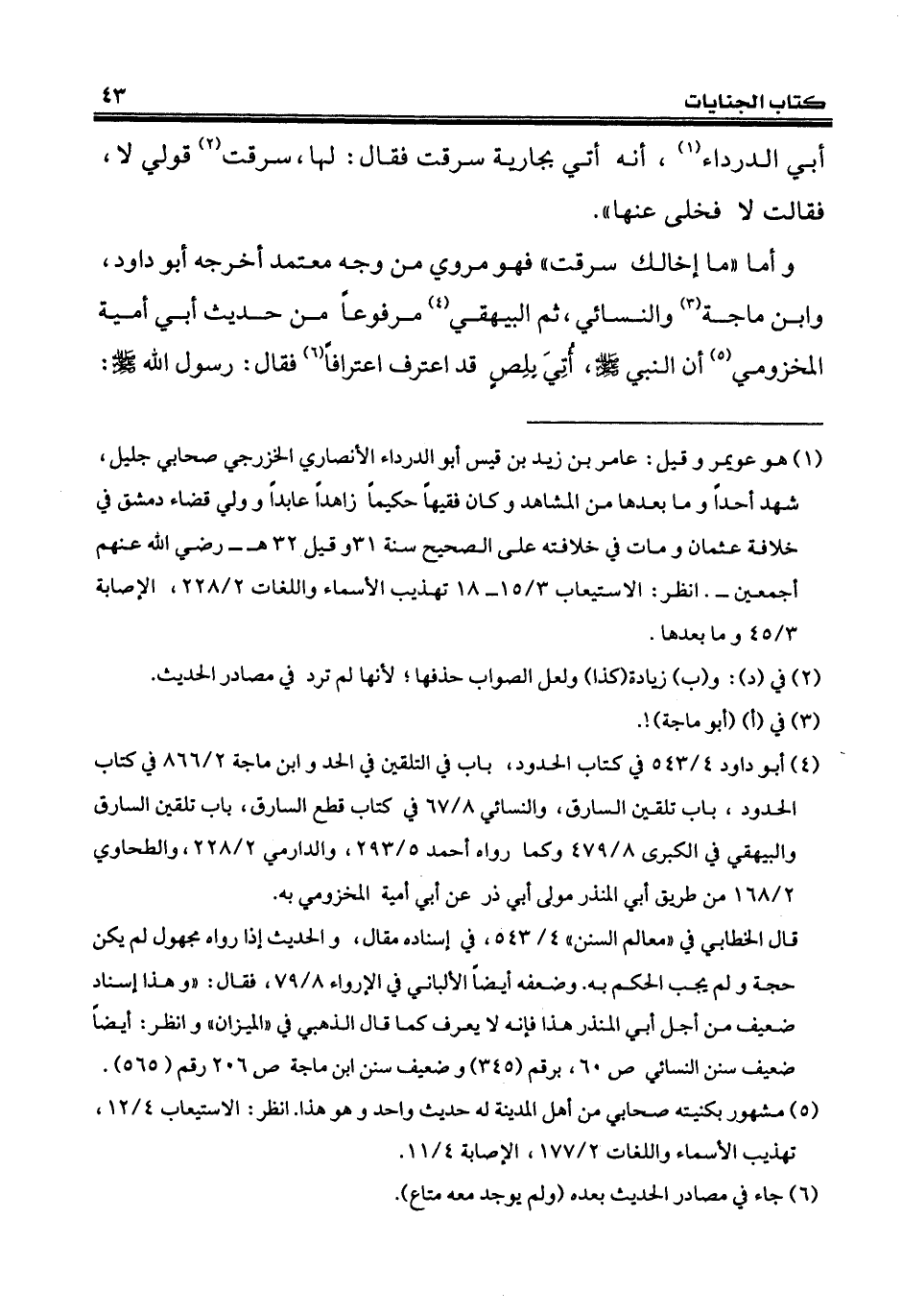 (¬4) أبو داود 4/ 543 في كتاب الحدود، باب في التلقين في الحد وابن ماجة 2/ 866 في كتاب الحدود، باب تلقين السارق، والنسائي 8/ 67 في كتاب قطع السارق، باب تلقين السارق والبيهقي في الكبرى 8/ 479 وكما رواه أحمد 5/ 293، والدارمي 2/ 228، والطحاوي 2/ 168 من طريق أبي المنذر مولى أبي ذر عن أبي أمية المخزومي به.