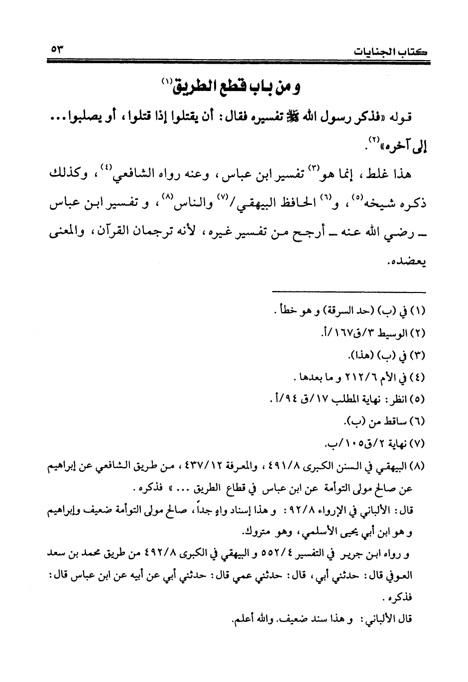 (¬8) البيهقي في السنن الكبرى 8/ 491، والمعرفة 12/ 437، من طريق الشافعي عن إبراهيم عن صالح مولى التوأمة عن ابن عباس في قطاع الطريق ... " فذكره.