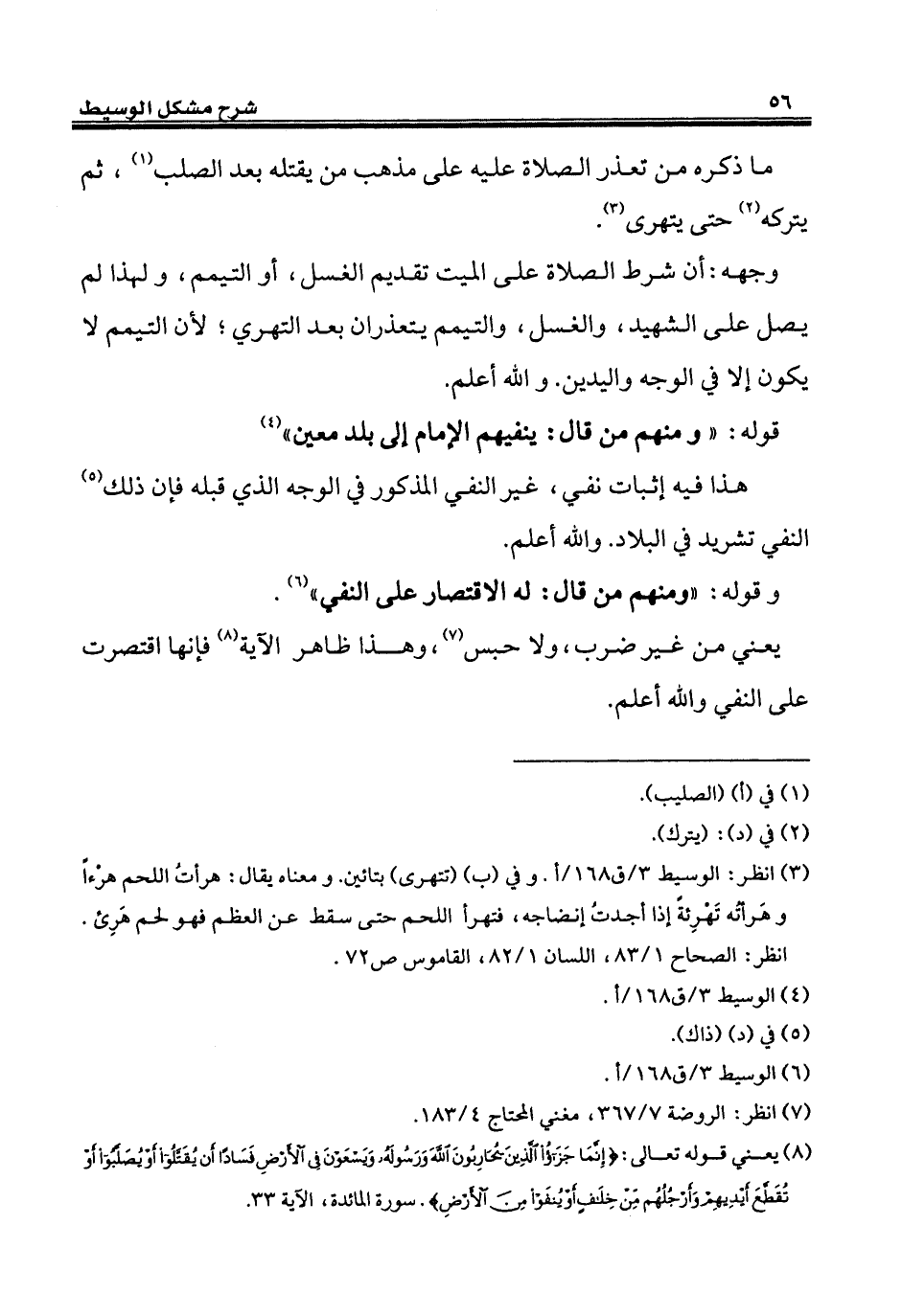 (¬8) يعني قوله تعالى: {إِنَّمَا جَزَاءُ الَّذِينَ يُحَارِبُونَ اللَّهَ وَرَسُولَهُ وَيَسْعَوْنَ فِي الْأَرْضِ فَسَادًا أَنْ يُقَتَّلُوا أَوْ يُصَلَّبُوا أَوْ تُقَطَّعَ أَيْدِيهِمْ وَأَرْجُلُهُمْ مِنْ خِلَافٍ أَوْ يُنْفَوْا مِنَ الْأَرْضِ}. سورة المائدة، الآية 33.