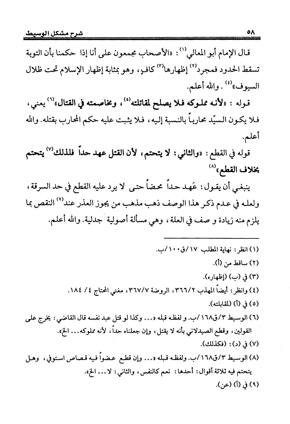 (¬8) الوسيط 3/ ق 168/ ب. ولفظه قبله " ... وإن قطع عضواً فيه قصاص استوفي، وهل يتحتم فيه ثلاثة أقوال: أحدها: نعم كالنفس، والثاني: لا ... إلخ".