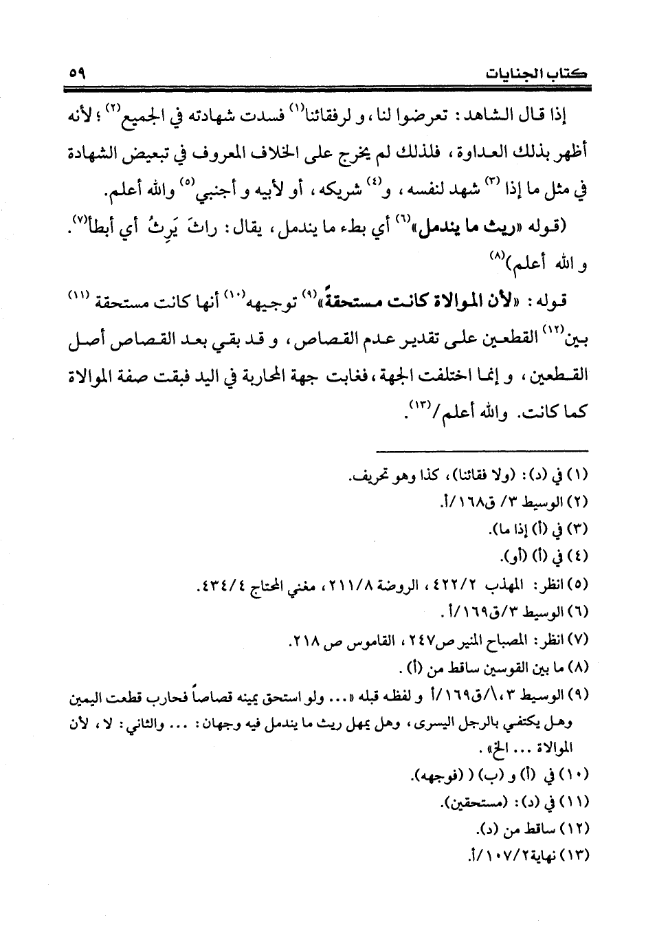 (¬9) الوسيط 3/ ق 169/ أولفظه قبله " ... ولو استحق يمينه قصاصاً فحارب قطعت اليمين وهل يكتفي بالرجل اليسرى، وهل يمهل ريث ما يندمل فيه وجهان: ... والثاني: لا, لأن الموالاة ... إلخ".