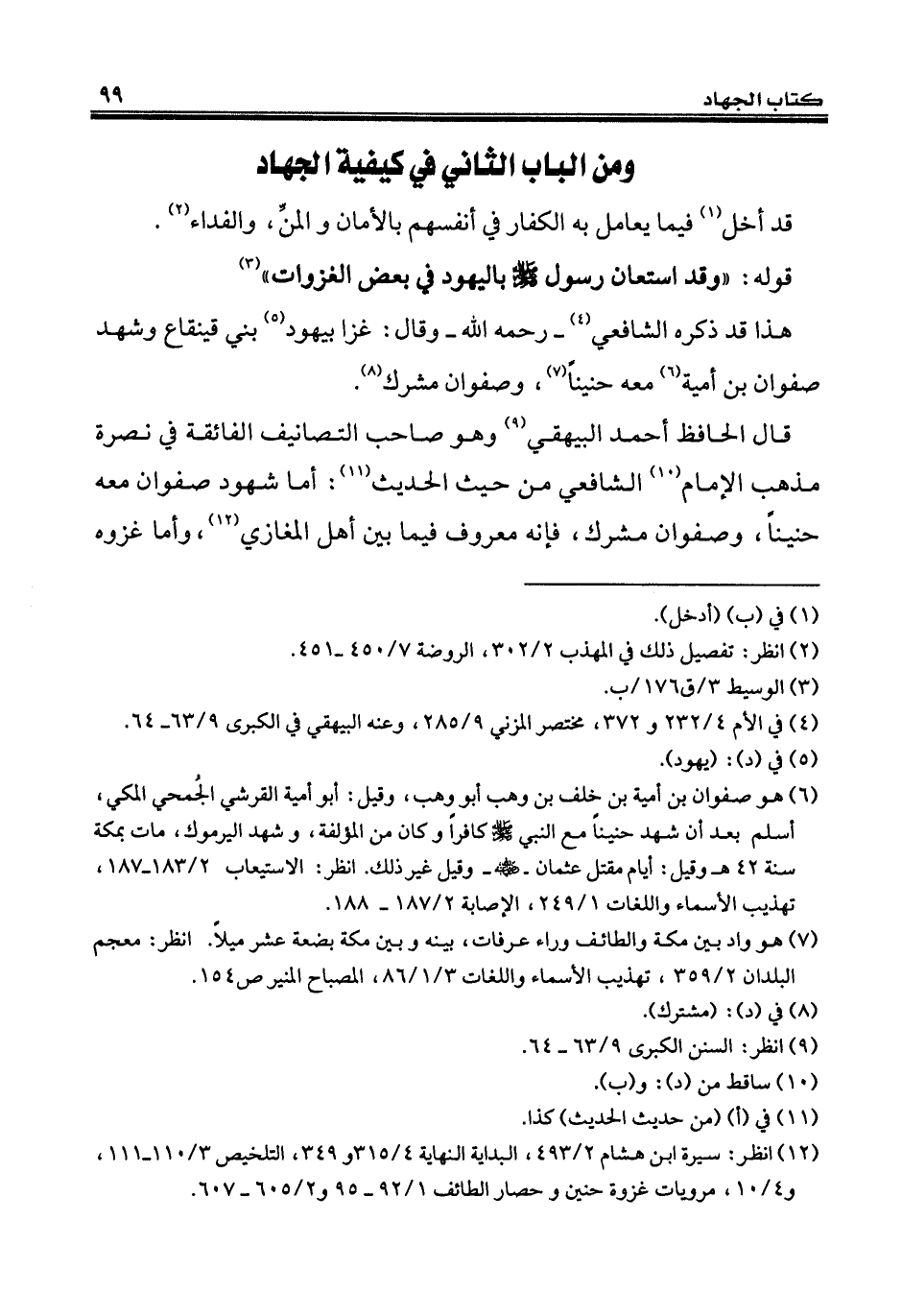 قال الحافظ أحمد البيهقي (¬9) وهو صاحب التصانيف الفائقة في نصرة مذهب الإِمام (¬10) الشافعي من حيث الحديث (¬11): أما شهود صفوان معه حنيناً، وصفوان مشرك، فإنه معروف فيما بين أهل المغازي (¬12)، وأما غزوه