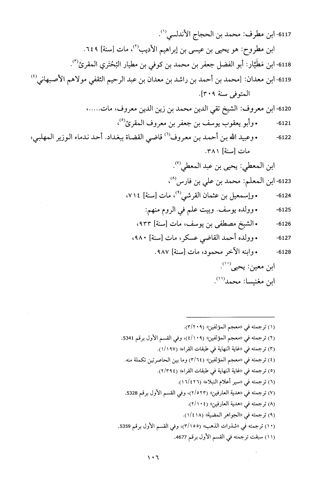 6121 - • وأبو يعقوب يوسف بن جعفر بن معروف المقرئ (¬5)،