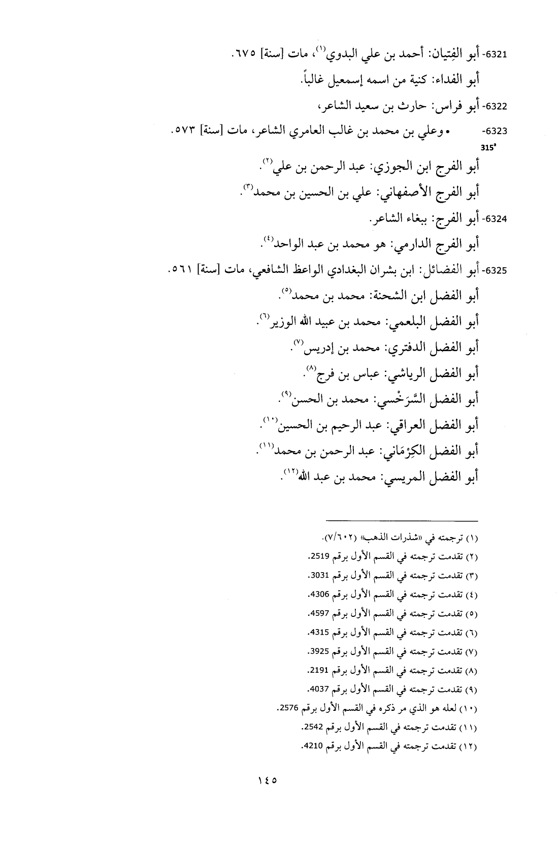 6325 - أبو الفضائل: ابن بشران البغدادي الواعظ الشافعي، مات [سنة] 561.