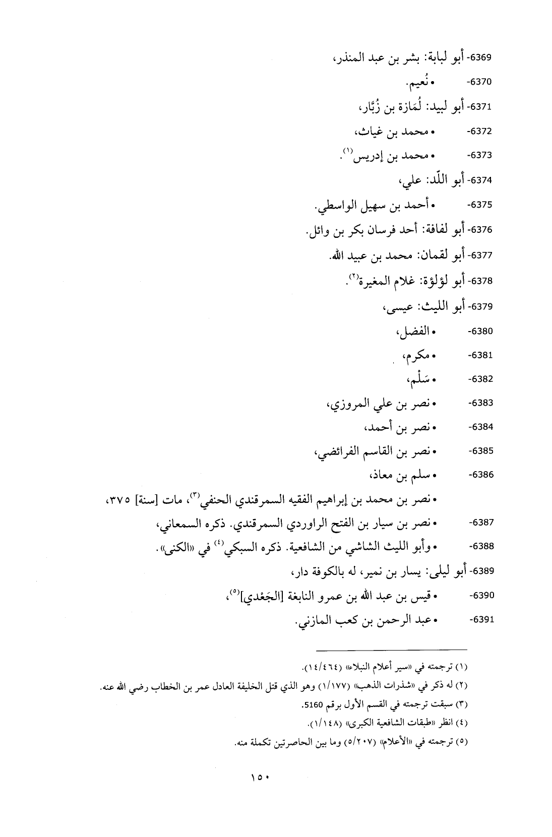 6388 - • وأبو الليث الشاشي من الشافعية. ذكره السبكي (¬4) في "الكنى".