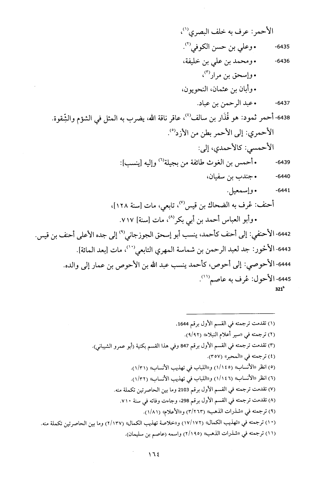 6442 - الأحنفي: إلى أحنف كأحمد، ينسب أبو إسحق الجوزجاني (¬9) إلى جده الأعلى أحنف بن قيس.