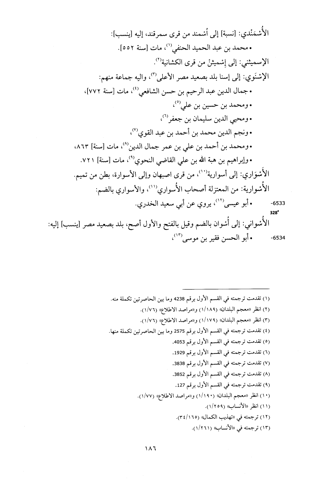 الإسْنَوي: إلى إسنا بلد بصعيد مصر الأعلى (¬3)، واليه جماعة منهم: