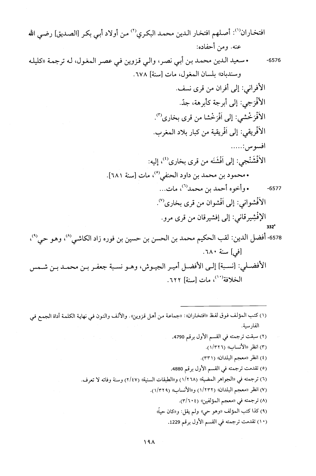 (¬1) كتب المؤلف فوق لفظ "افتخاران": "جماعة من أهل قزوين". والألف والنون في نهاية الكلمة أداة الجمع في الفارسية.
