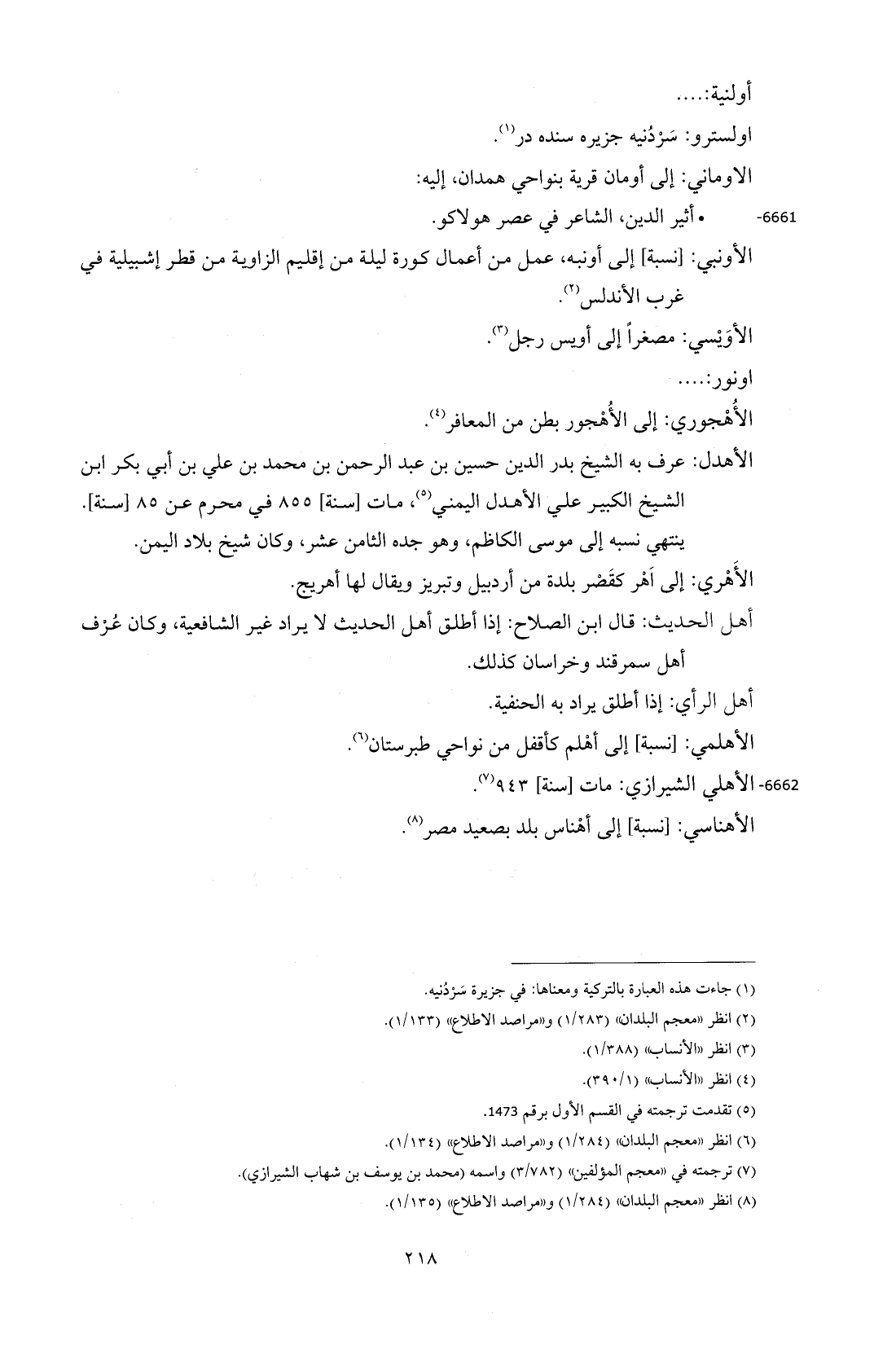 الأهلمي: [نسبة] إلى أهْلم كأقفل من نواحي طبرستان (¬6).