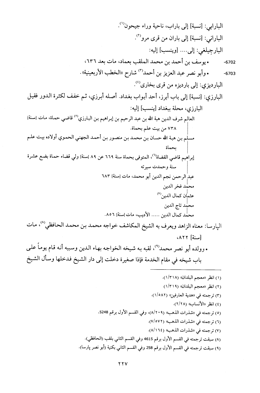 6703 - • وأبو نصر عبد العزيز بن أحمد (¬3) شارح "الخطب الأربعينية".