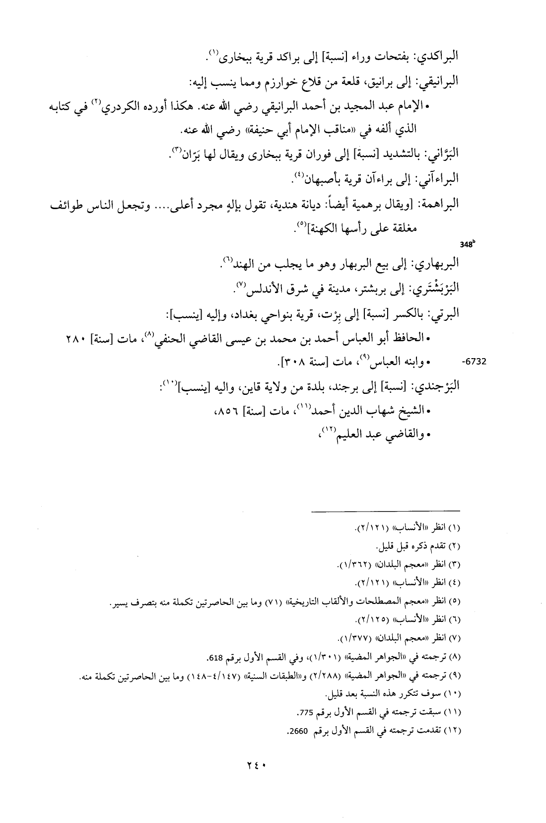 البَرَّاني: بالتشديد [نسبة] إلى فوران قرية ببخارى ويقال لها بَرّان (¬3).