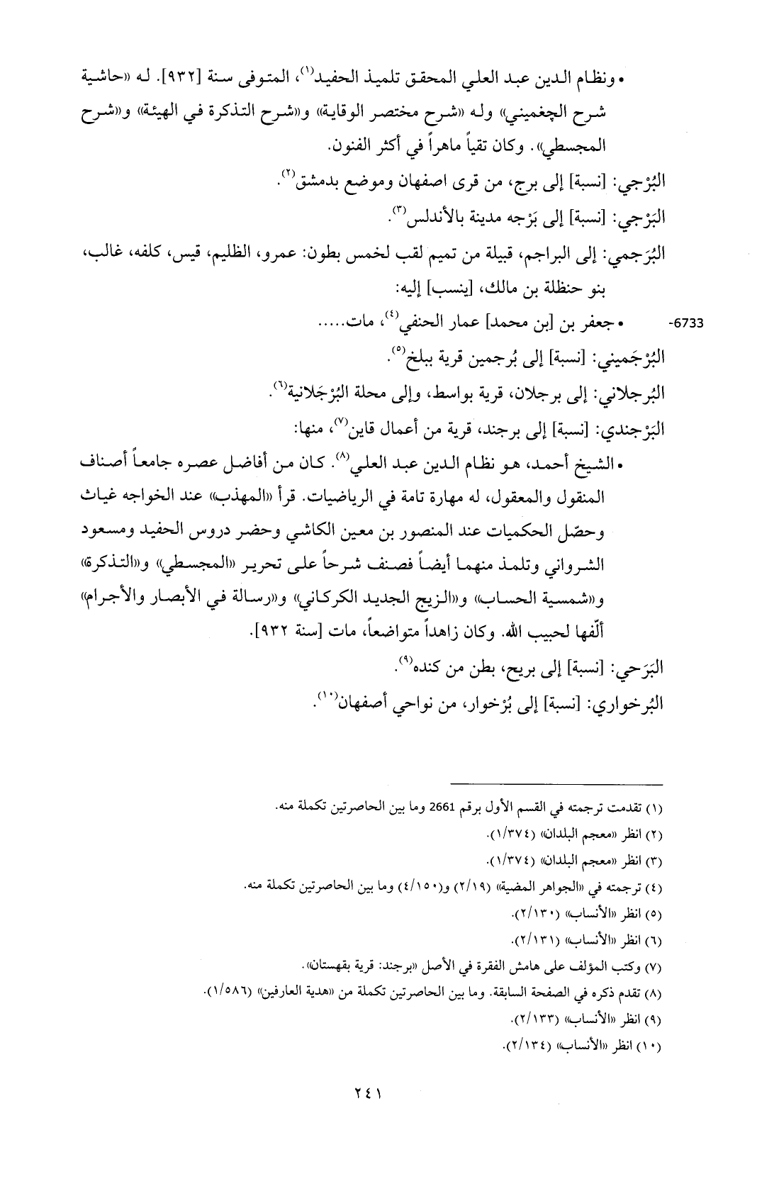 (¬7) وكتب المؤلف على هامش الفقرة في الأصل "برجند: قرية بقهستان".
