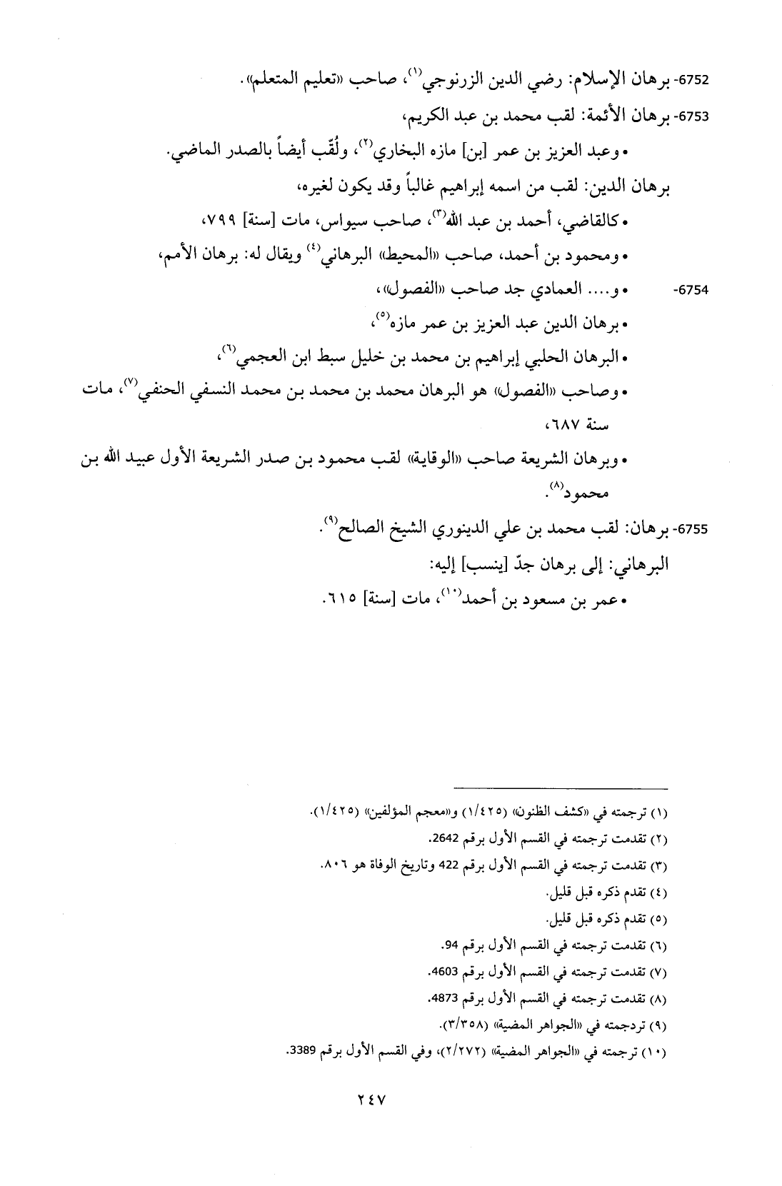 6753 - برهان الأئمة: لقب محمد بن عبد الكريم،