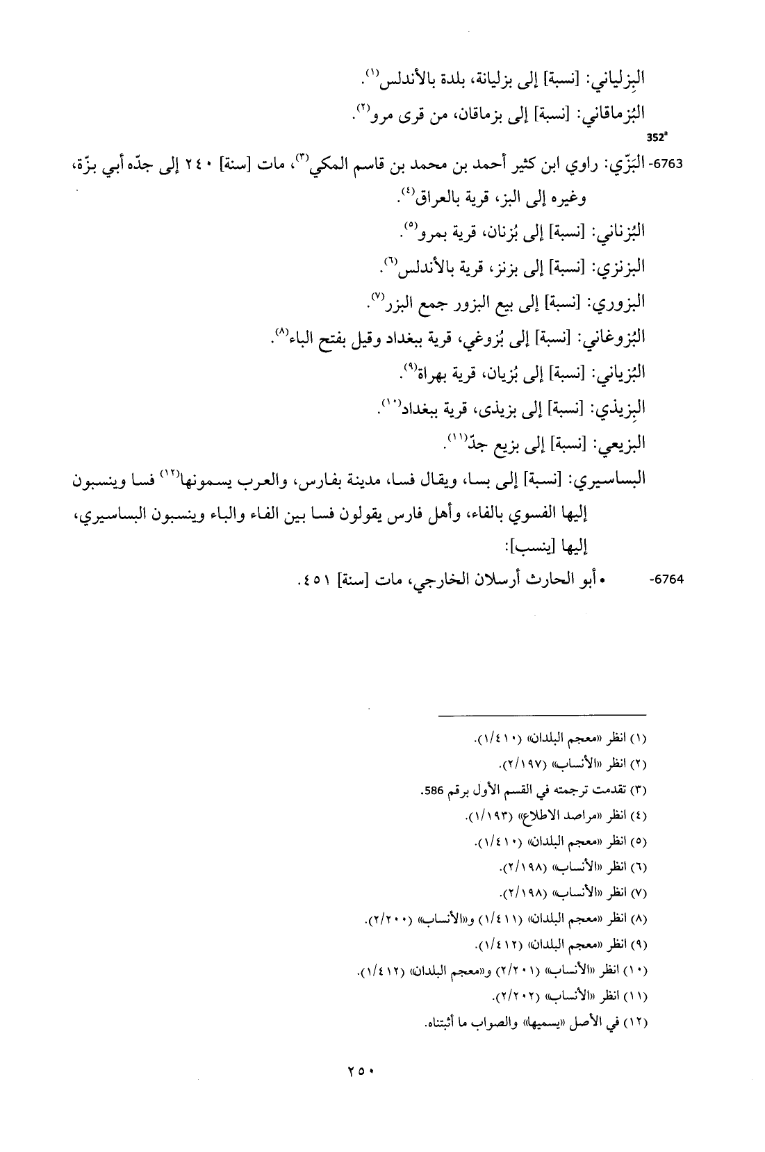 6763 - البَزّي: راوي ابن كثير أحمد بن محمد بن قاسم المكي (¬3)، مات [سنة] 240 إلى جدّه أبي بزّة،