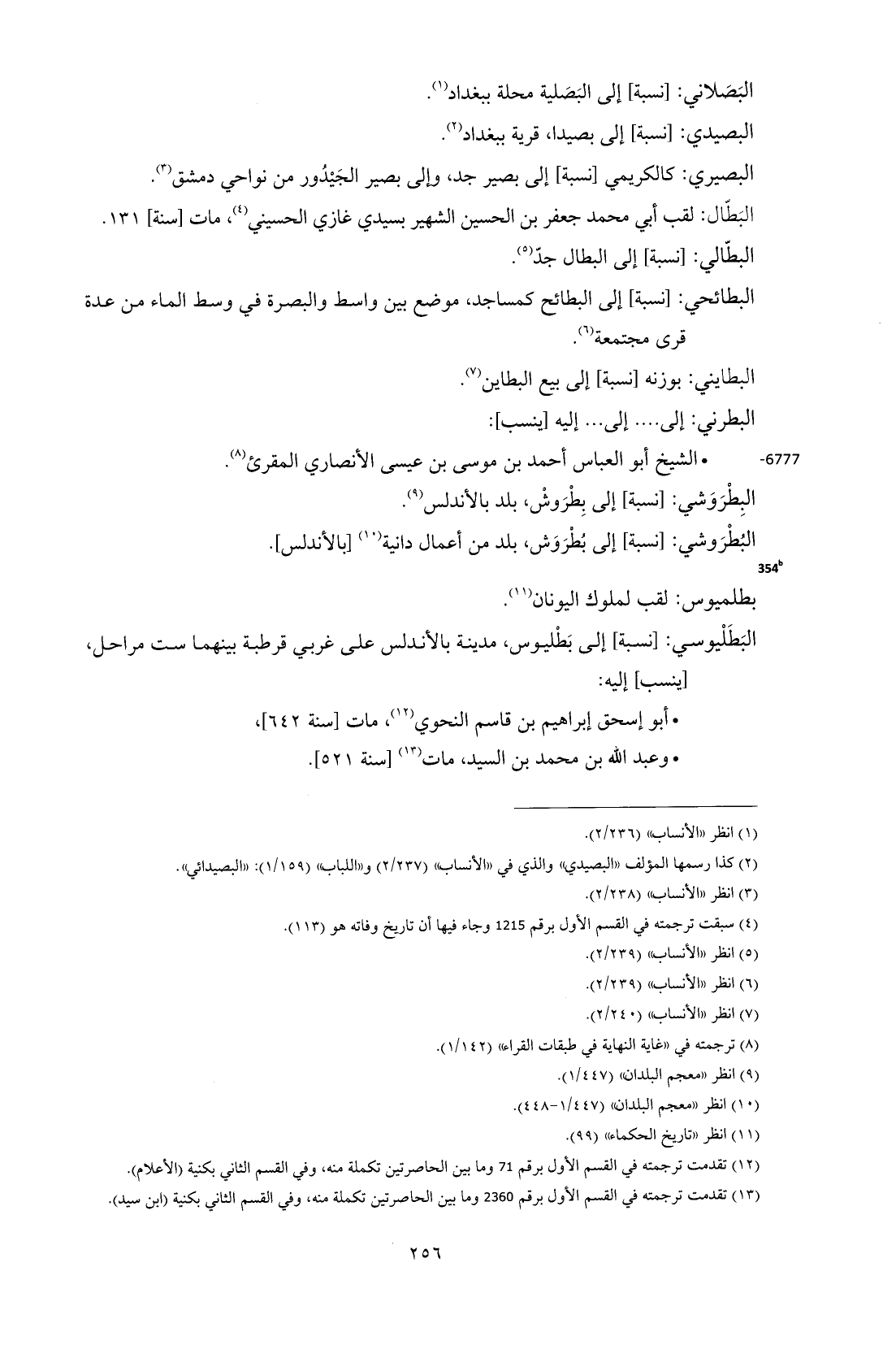 (¬12) تقدمت ترجمته في القسم الأول برقم 71 وما بين الحاصرتين تكملة منه، وفي القسم الثاني بكنية (الأعلام).
