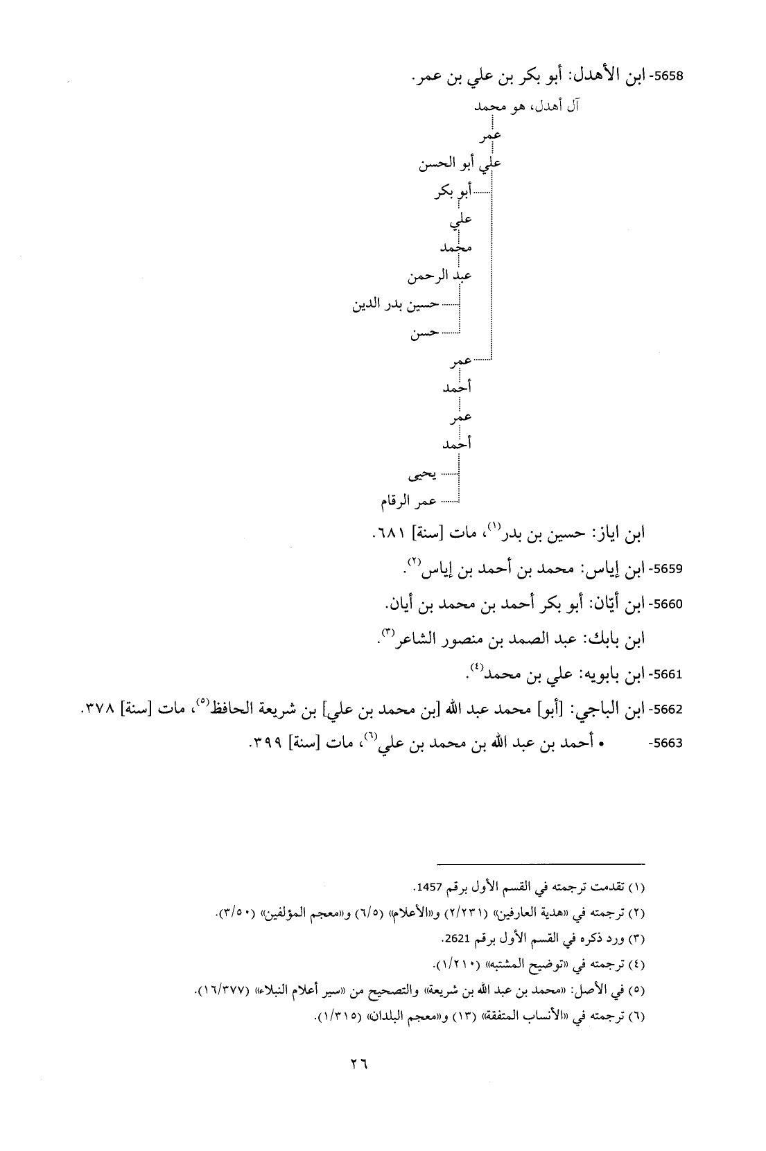 5663 - • أحمد بن عبد الله بن محمد بن علي (¬6)، مات [سنة] 399.