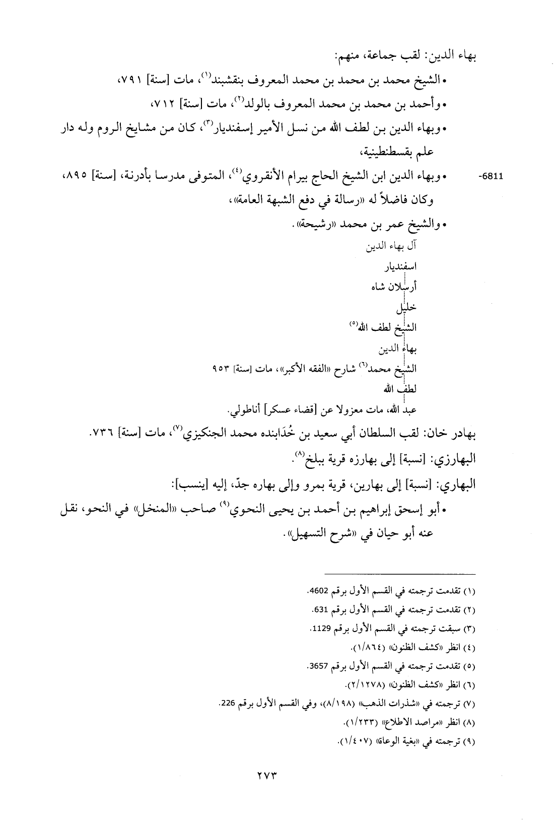 • وبهاء الدين بن لطف الله من نسل الأمير إسفنديار (¬3)، كان من مشايخ الروم وله دار علم بقسطنطينية،