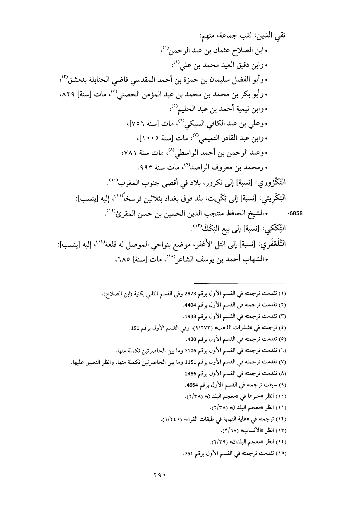 (¬1) تقدمت ترجمته في القسم الأول برقم 2873 وفي القسم الثاني بكنية (ابن الصلاح).