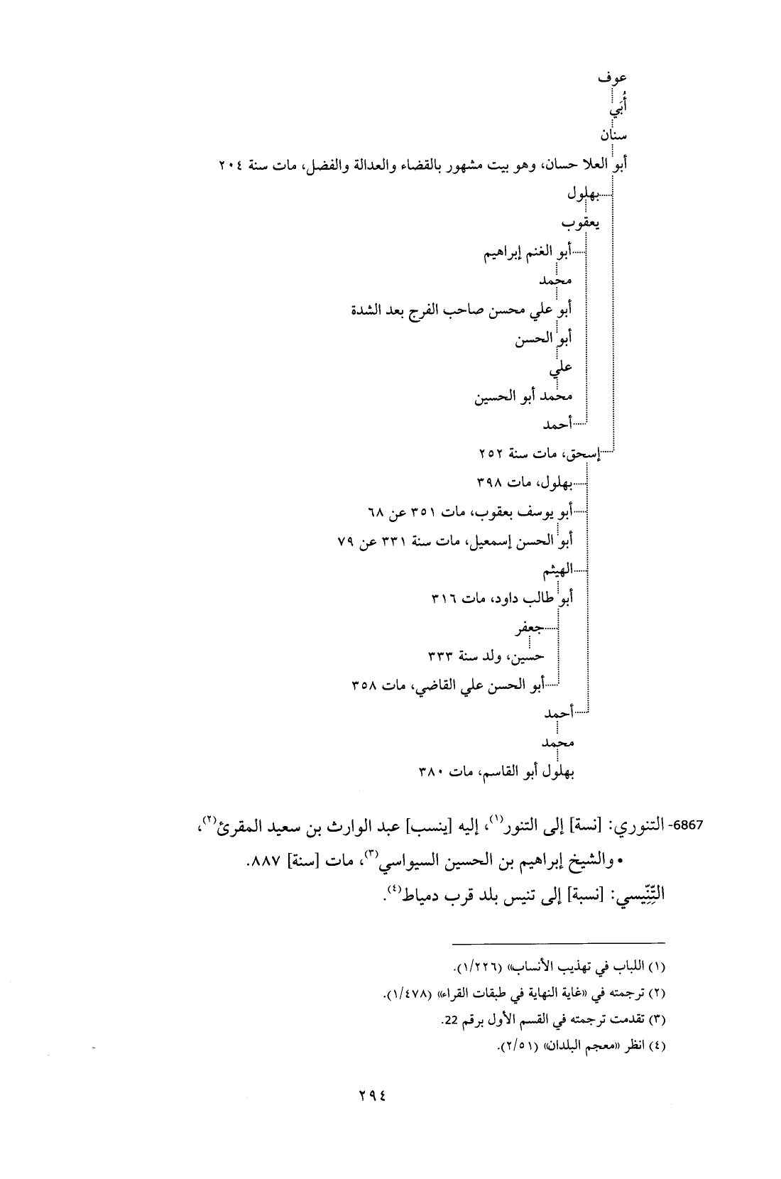 6867 - التنوري: [نسبة] إلى التنور (¬1)، إليه [ينسب] عبد الوارث بن سعيد المقرئ (¬2)