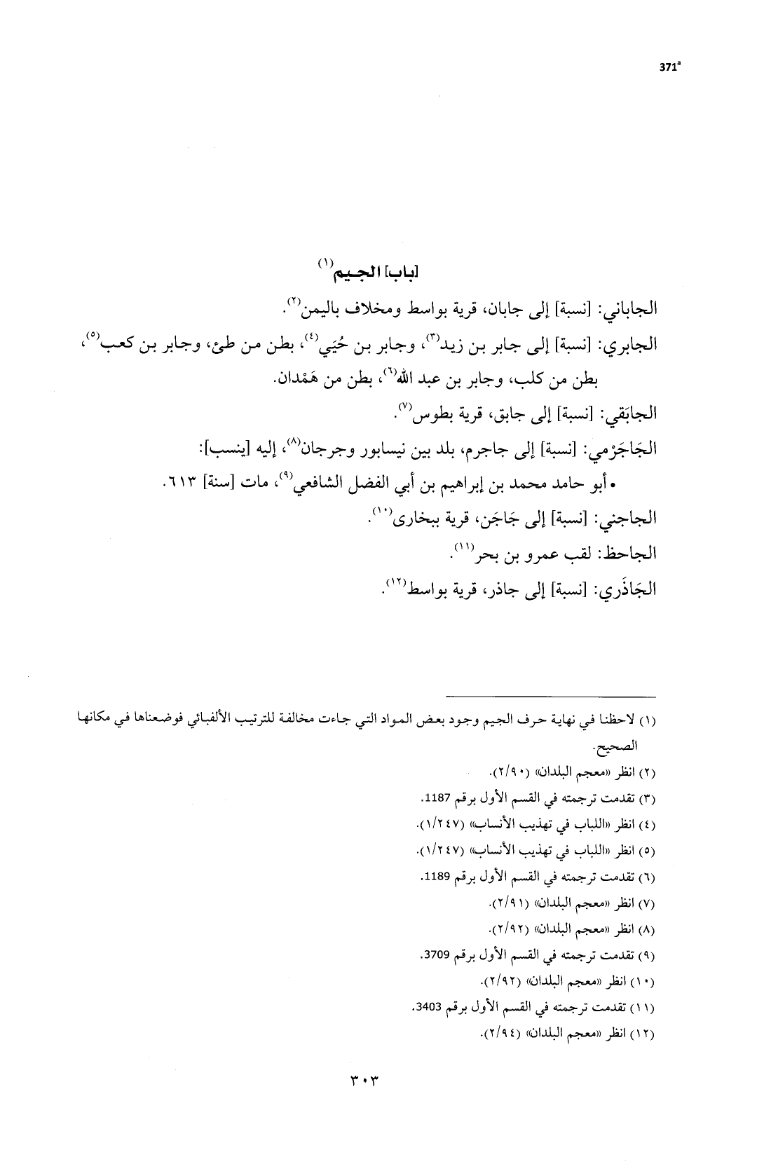 (¬1) لاحظنا في نهاية حرف الجيم وجود بعض المواد التي جاءت مخالفة للترتيب الألفبائي فوضعناها في مكانها لصحيح.
