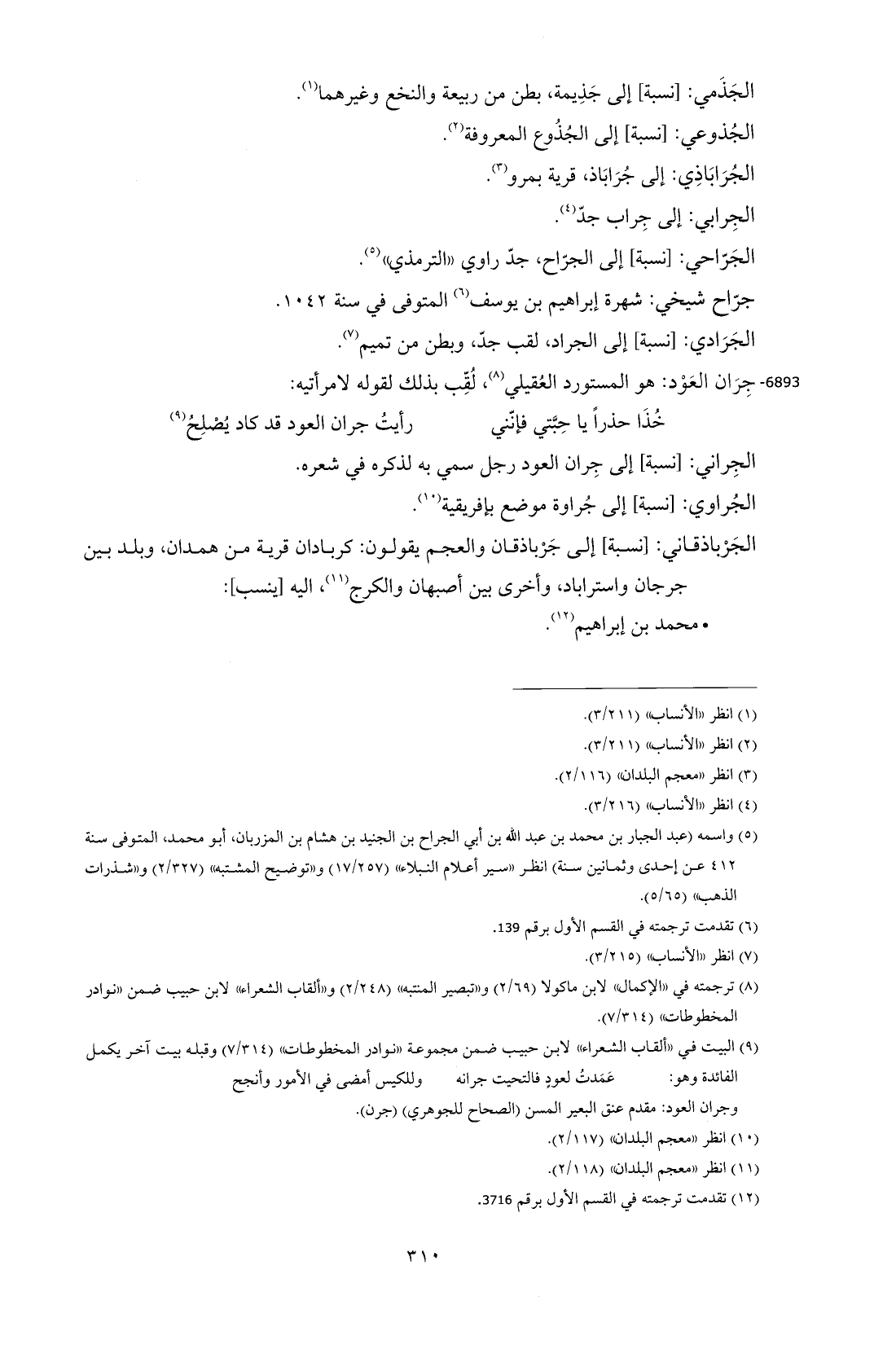 6893 - جِرَان العَوْد: هو المستورد العُقيلي (¬8)، لُقِّب بذلك لقوله لامرأتيه: