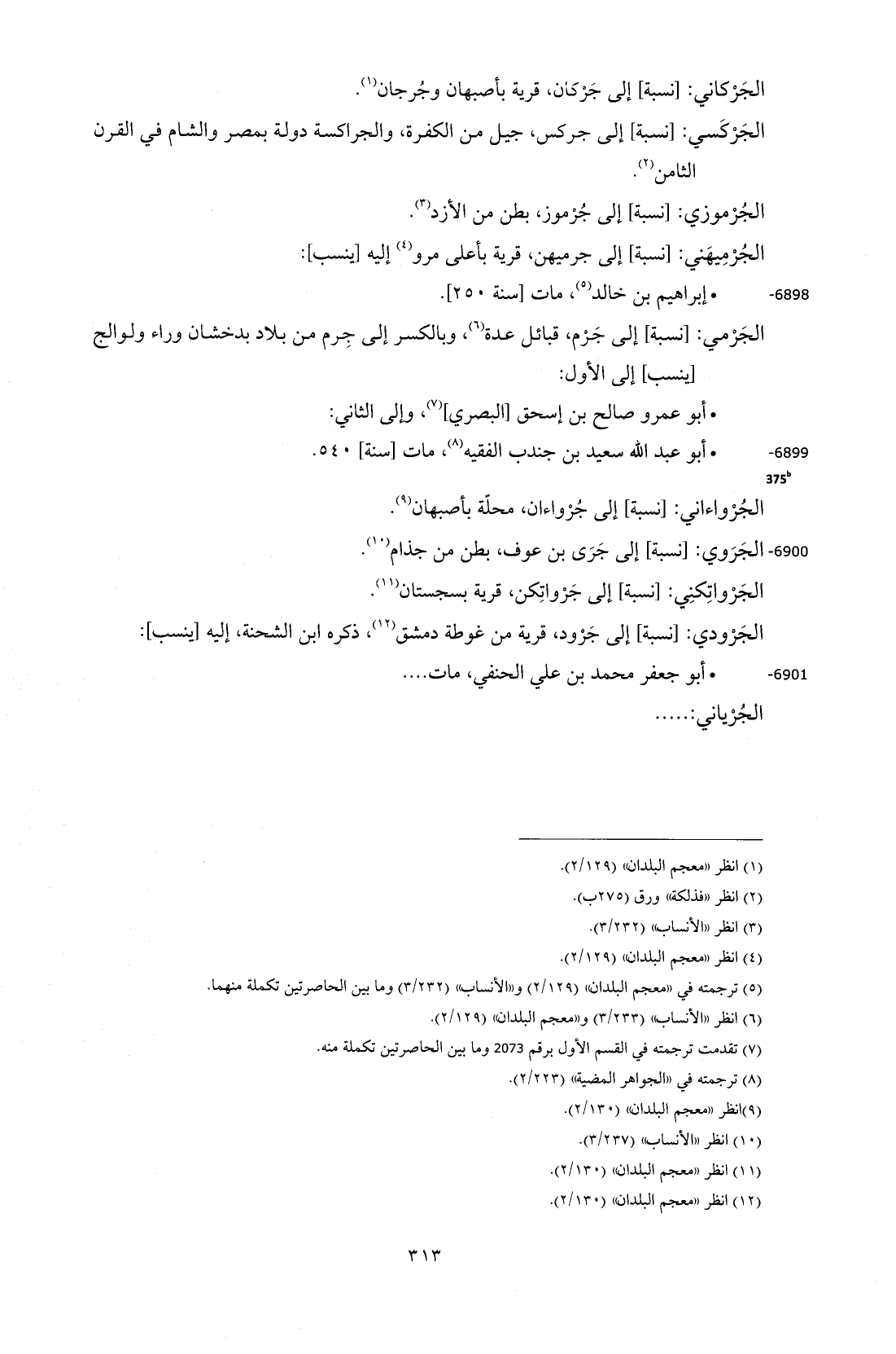 6900 - الجَرَوي: [نسبة] إلى جَرَى بن عوف، بطن من جذام (¬10).