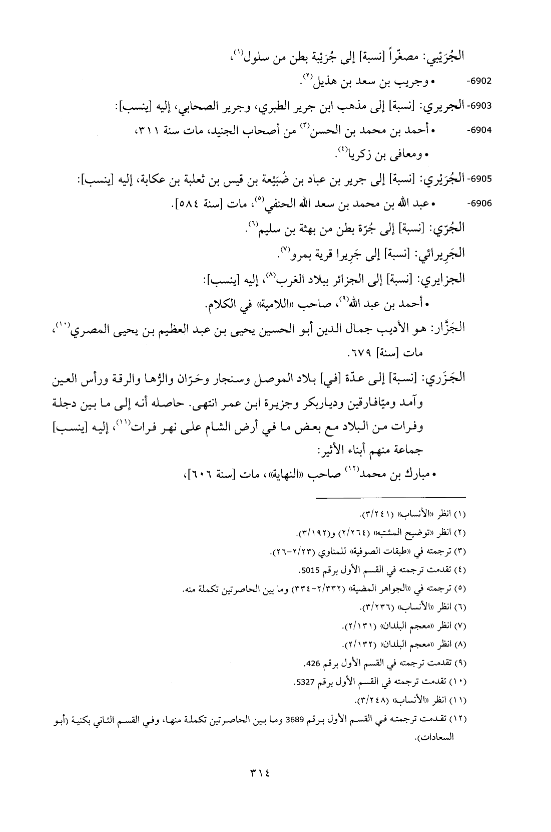 6903 - الجريري: [نسبة] إلى مذهب ابن جرير الطبري، وجرير الصحابي، إليه [ينسب]: