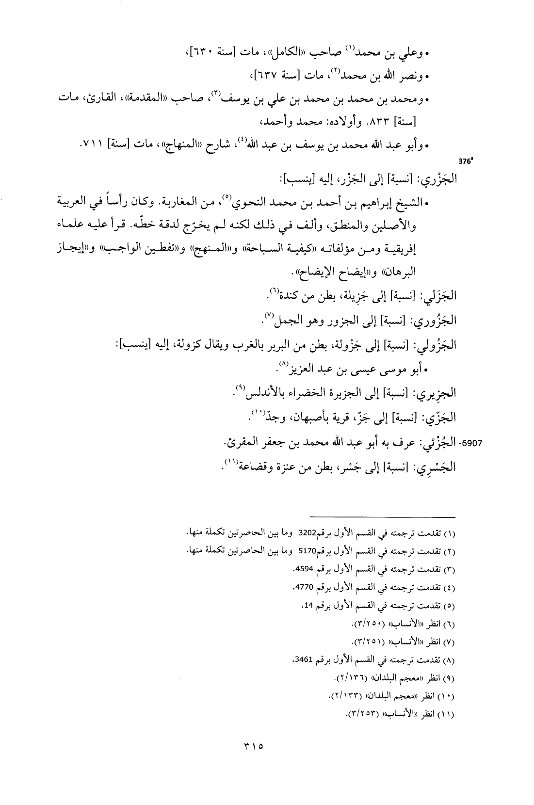 • ومحمد بن محمد بن محمد بن علي بن يوسف (¬3)، صاحب "المقدمة"، القارئ، مات [سنة] 833. وأولاده: محمد وأحمد،