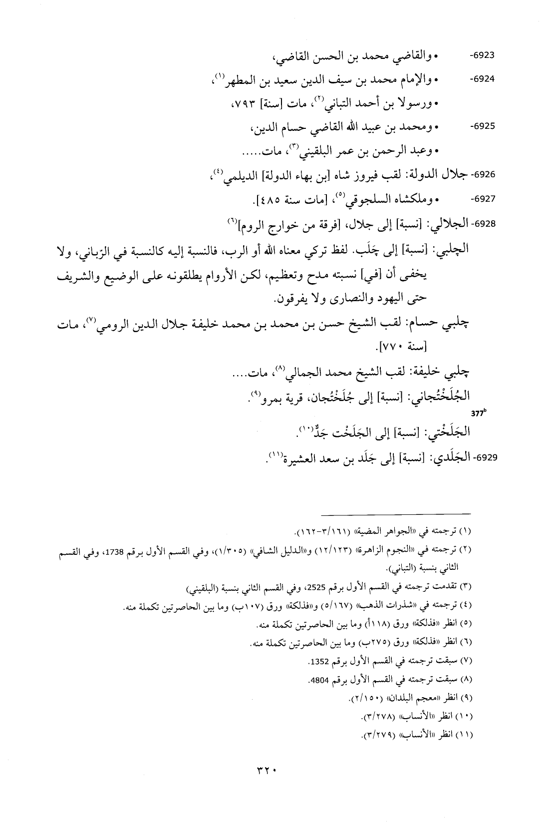 6928 - الجلالي: [نسبة] إلى جلال، [فرقة من خوارج الروم] (¬6)