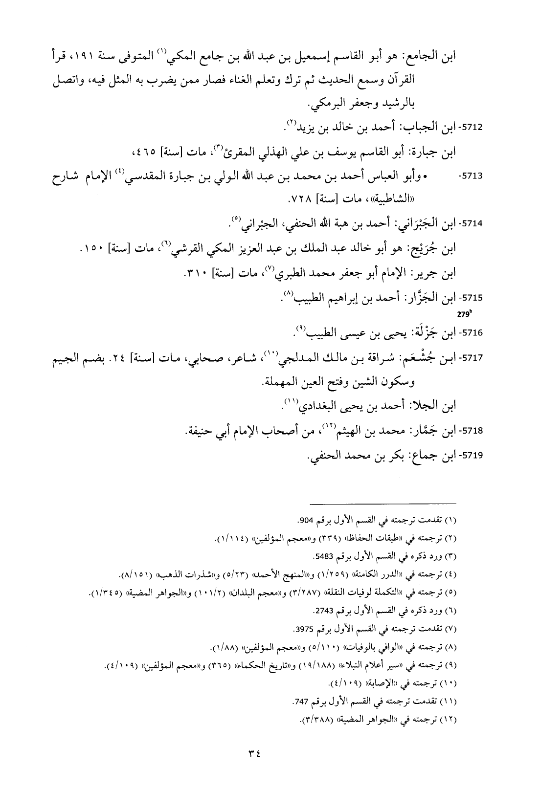 5713 - • وأبو العباس أحمد بن محمد بن عبد الله الولي بن جبارة المقدسي (¬4) الإمام شارح "الشاطبية"، مات [سنة] 728.