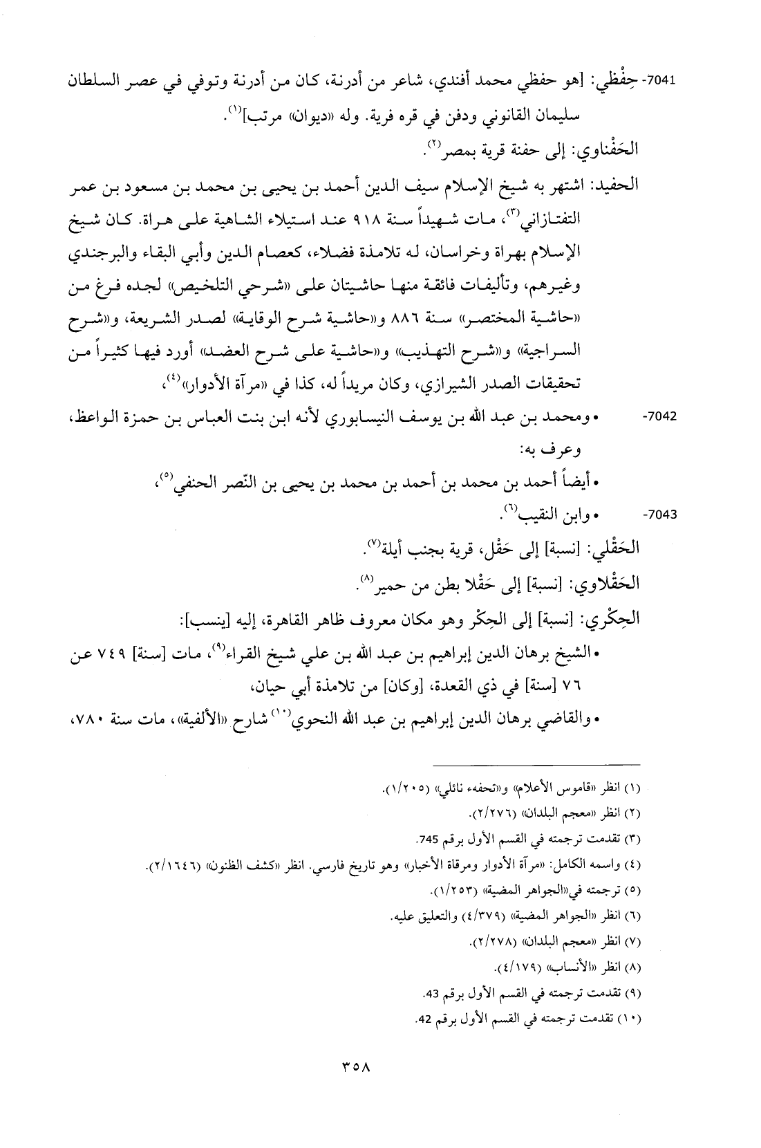 7041 - حِفْظي: [هو حفظي محمد أفندي، شاعر من أدرنة، كان من أدرنة وتوفي في عصر السلطان سليمان القانوني ودفن في قره فرية. وله "ديوان" مرتب] (¬1).
