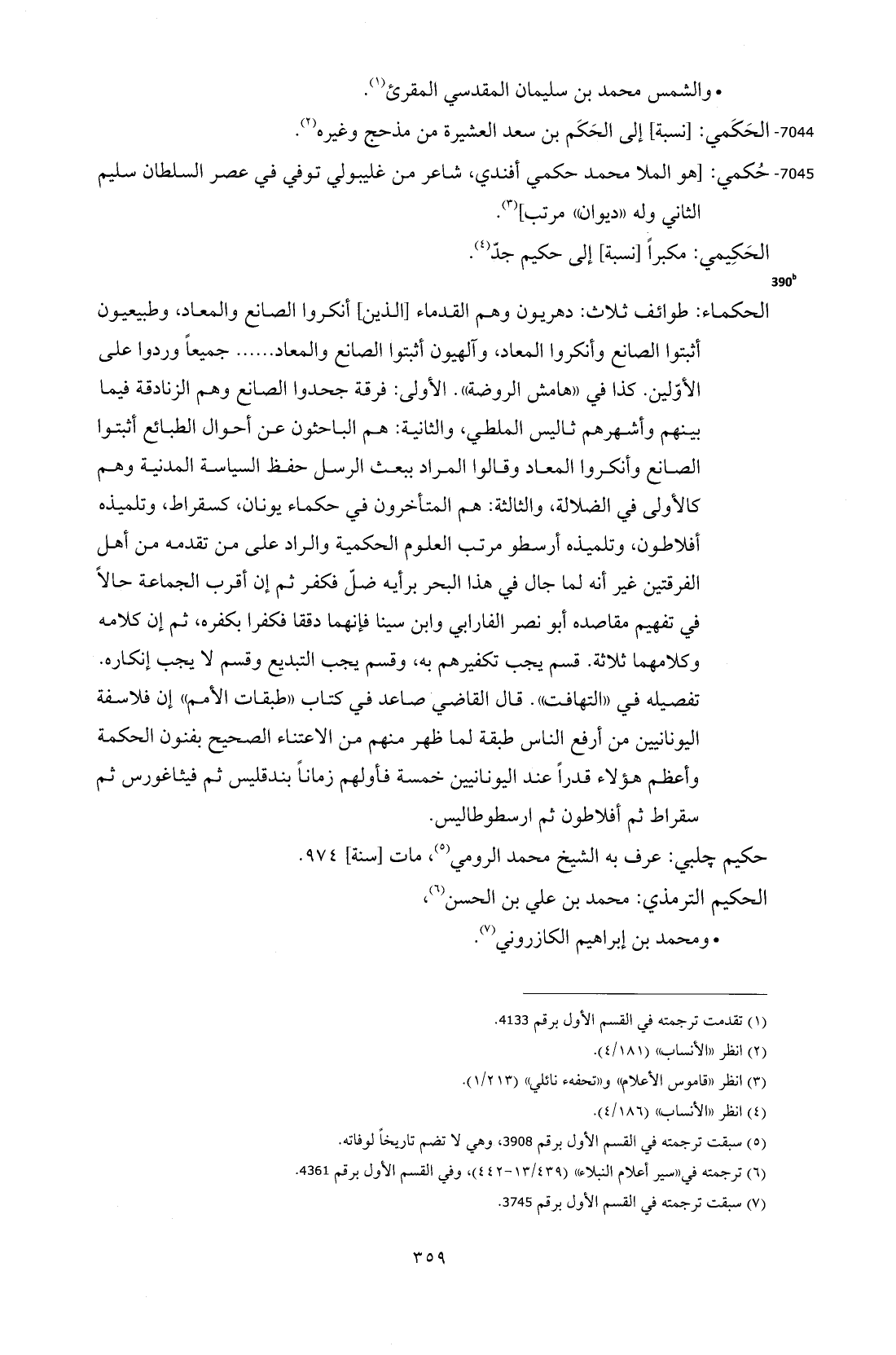 7045 - حُكمي: [هو الملا محمد حكمي أفندي، شاعر من غليبولي توفي في عصر السلطان سليم الثاني وله "ديوان" مرتب] (¬3).