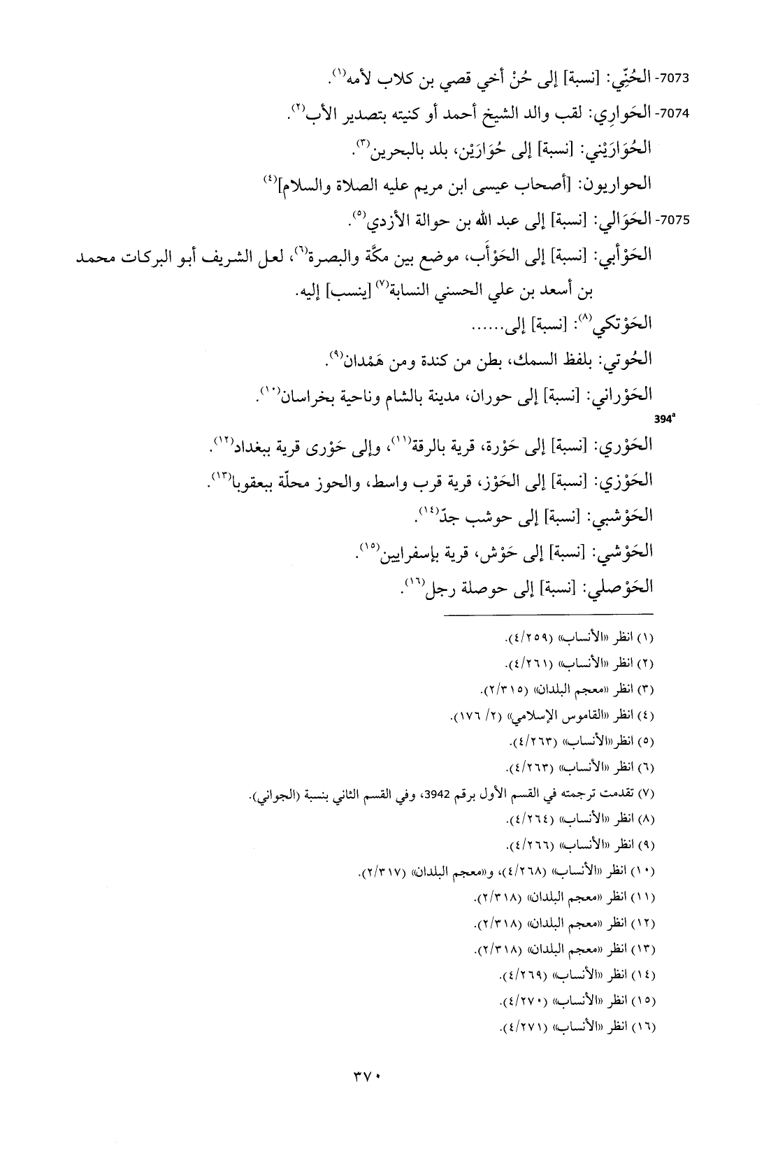 7074 - الحَوارِي: لقب والد الشيخ أحمد أو كنيته بتصدير الأب (¬2).