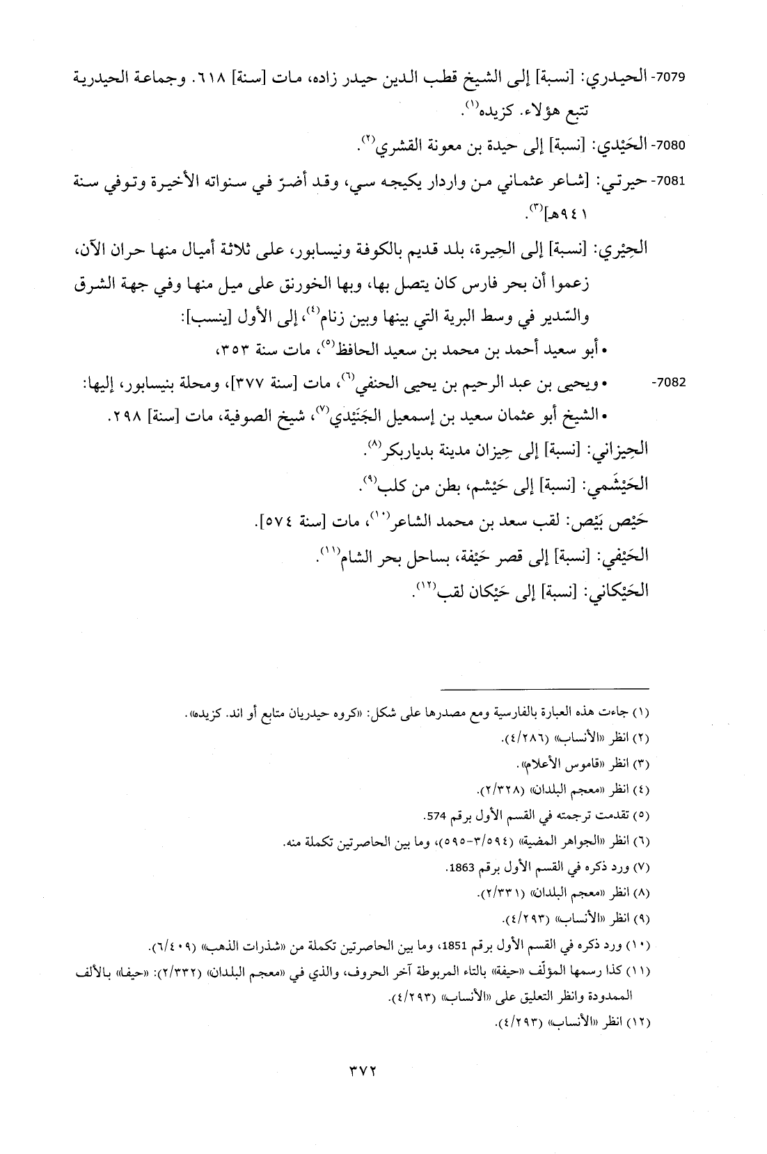 7079 - الحيدري: [نسبة] إلى الشيخ قطب الدين حيدر زاده، مات [سنة] 618. وجماعة الحيدرية تتبع هؤلاء. كزيده (¬1).
