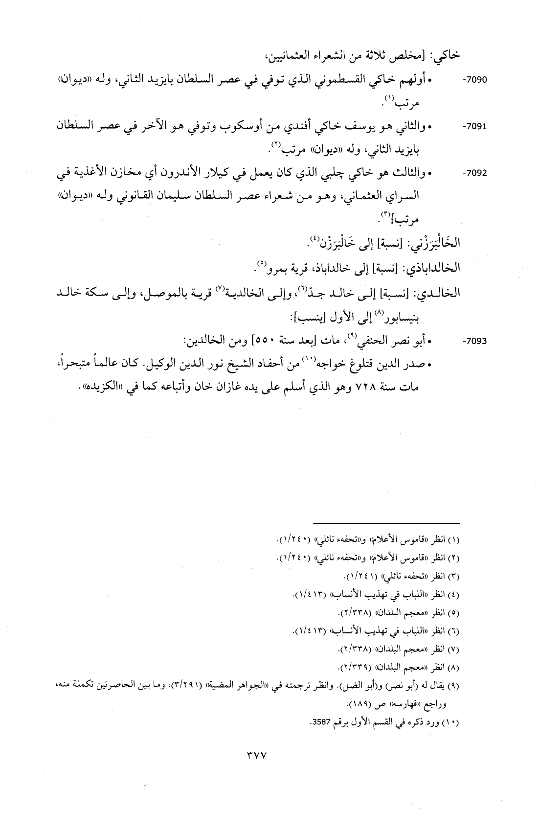 7092 - • والثالث هو خاكي جلبي الذي كان يعمل في كيلار الأندرون أي مخازن الأغذية في السراي العثماني، وهو من شعراء عصر السلطان سليمان القانوني وله "ديوان" مرتب] (¬3).